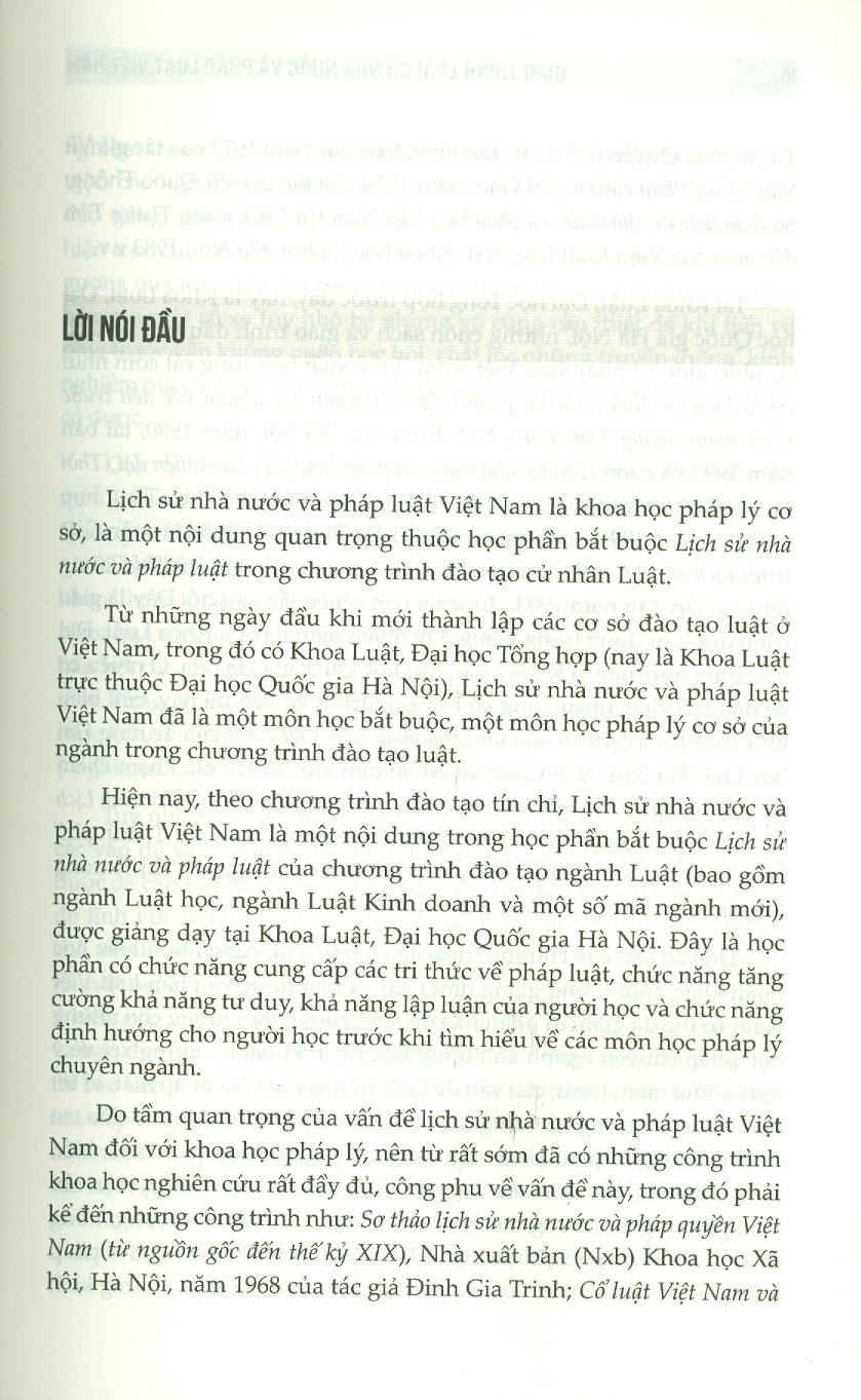Lịch sử nhà nước và pháp luật Việt Nam là khoa học pháp lý cơ sở, là một nội dung quan trọng thuộc học phần Lịch sử nhà nước và pháp luật trong chương