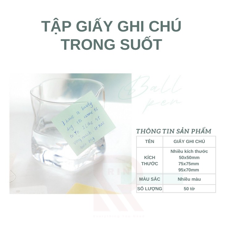 Màu sắc nhẹ nhàng, đơn giản. Giấy ghi chú trong suốt giúp ghi chú lên nội dung dễ dàng