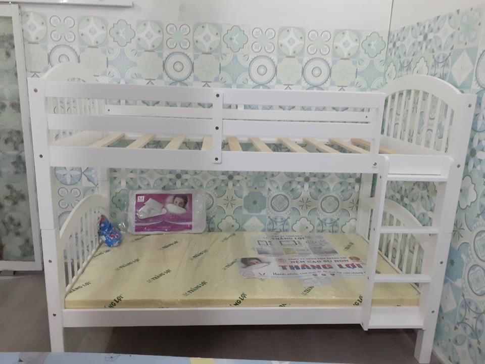KÍCH THƯỚC: R 110 x D 208 x C 165 (cm) NỆM TẦNG TRÊN: 100 x 195 x 9+ (cm) NỆM TẦNG DƯỚI: 100 x 195 x 9+ (cm) SÀN GIƯỜNG: 10 thanh/tầng MÀU SẮC:
