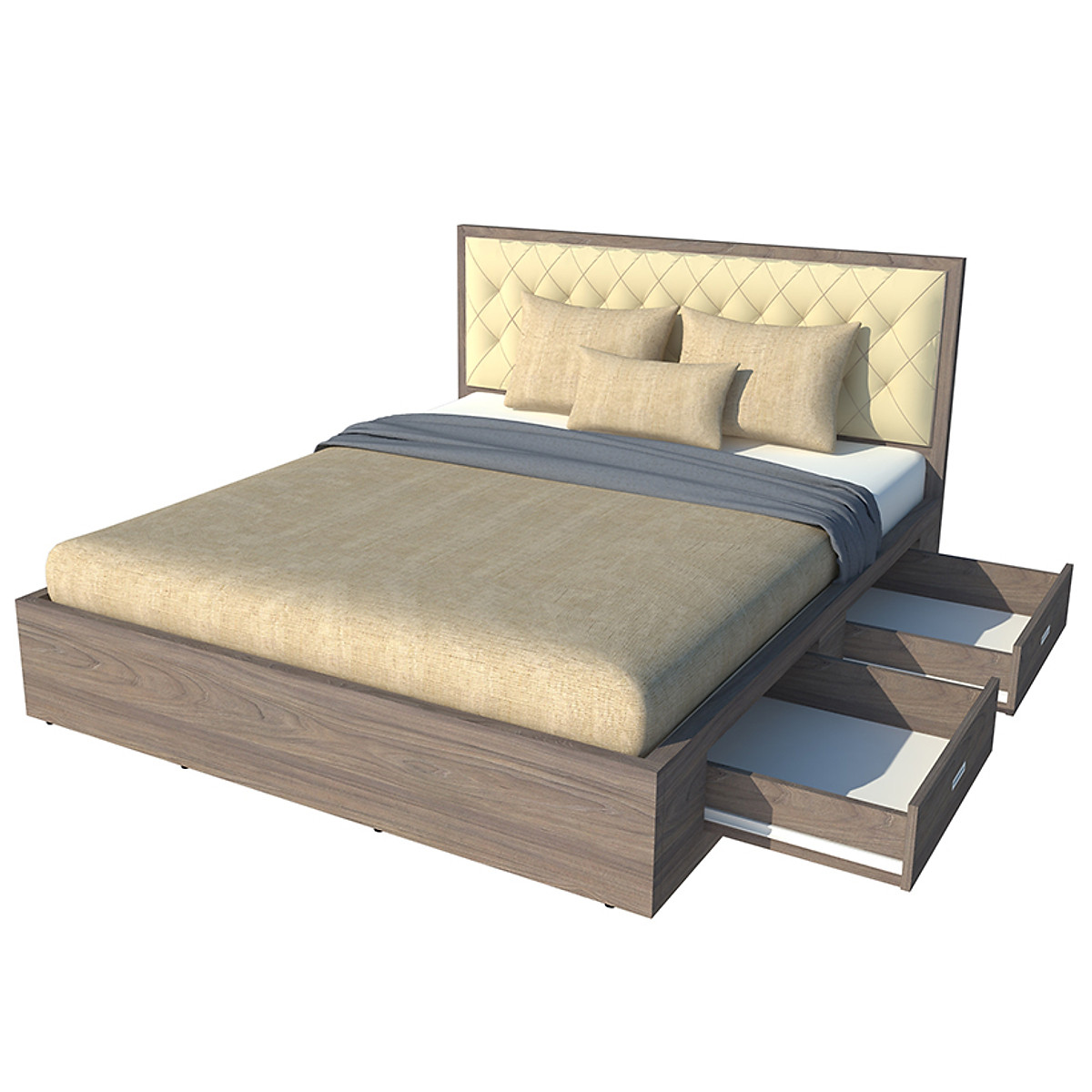 GIƯỜNG là một trong những nội thất phòng ngủ ngoài chức năng chính để ngã lưng giấc ngủ êm ái say nồng. Chọn đúng kiểu giường sẽ góp phần tô điểm cho không gian chung của Phòng Ngủ hài hòa và sang trọng hơn. Bên hông giường có 2 hộc kéo chứa các đồ dung rất tiện dụng.