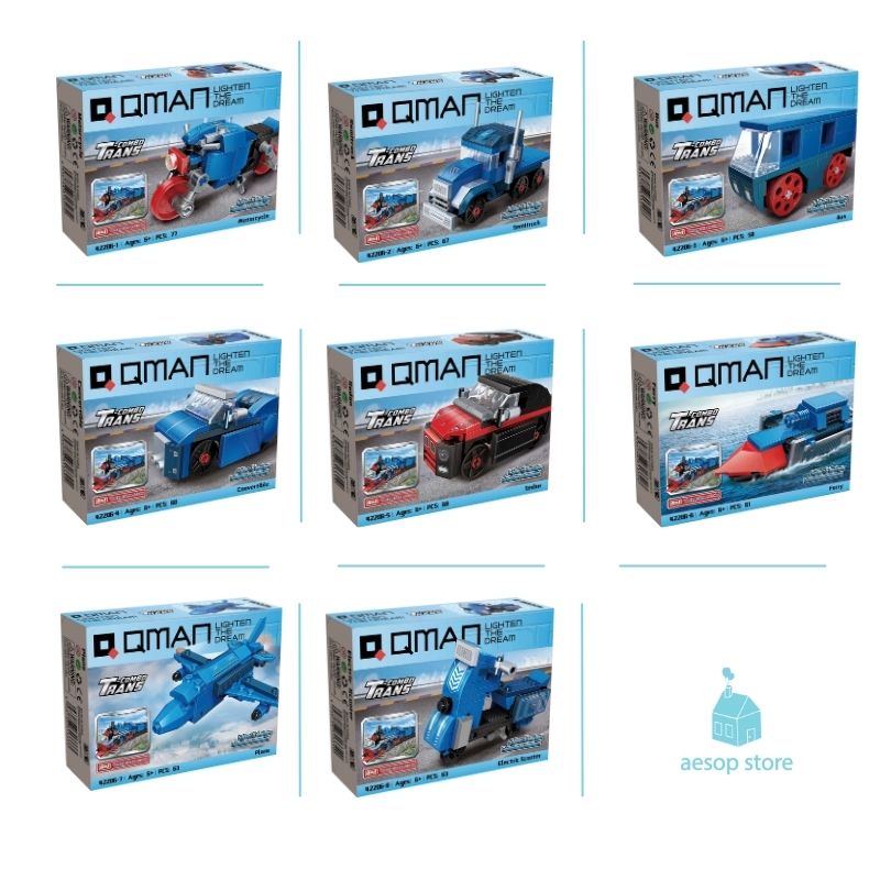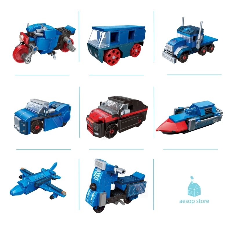 ĐỒ CHƠI LẮP RÁP TÀU HOẢ 8in1 QMAN  (517  mảnh ghép)   Hộp 8 bộ đồ chơi lắp ráp tạo thành phẩm 8 mô hình phương tiện vận chuyển khác nhau: xe mô tô, tàu, máy