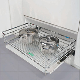 - Giá để xoong nồi tủ dưới - Chất liệu inox dạng nan tròn - Phiên bản bắt cánh và không bắt cánh - Ray âm giảm chấn Angas - Độ rộng cánh : 600mm