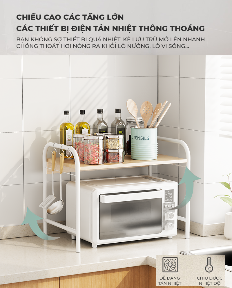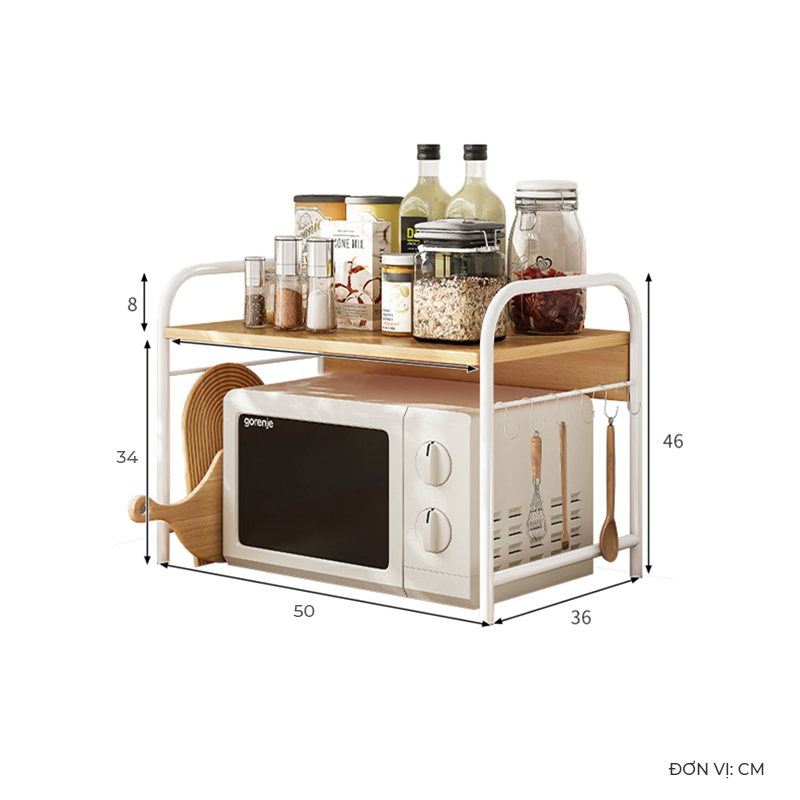 Công năng: Sắp xếp lò vi sóng, đồ dùng,