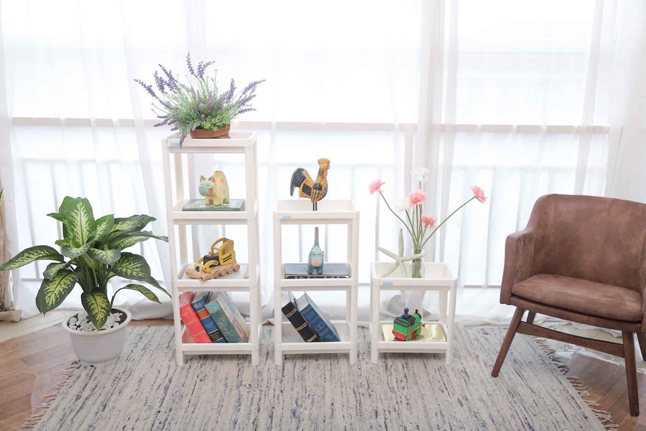 Thông tin sản phẩm: Thiết kế hiện đại, tháo lắp dễ dàng Kết cấu chắc chắn, chịu lực tốt Dễ dàng tùy biến cho nhiều không gia Kích thước: Chiều dài 38cm x chiều sâu 23cm x chiều cao 1,3m Chất liệu: Sản phẩm sản xuât từ nhựa nguyên sinh cao cấp xuất sứ Nhật Bản Màu sắc: Trắng Hiện đại Có thể làm kệ nhà tắm kệ phòng khách kệ đựng Sách Tùy theo nhu cầu sử dụng Phong cách: Hiện đại