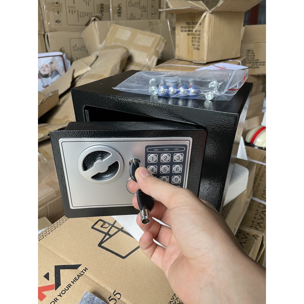 • Két sắt điện tử chống cháy, két sắt mini khoá điện tử 1 là mẫu mới nhất hiện nay, dùng để đồ cá nhân có giá trị hoặc sử dụng ở cửa hang tạp hoá nhỏ.