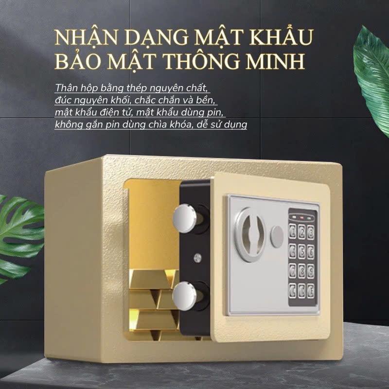 • Két sắt điện tử chống cháy, két sắt mini khoá điện tử được làm bằng hợp kim sơn tĩnh điện, mắc sắc đẹp bắt mắt, bền đẹp phù hợp với không gian hiện đại, có thể giúp các bạn tiết kiệm được các khoản chi tiêu nhỏ nhỏ xinh xinh.