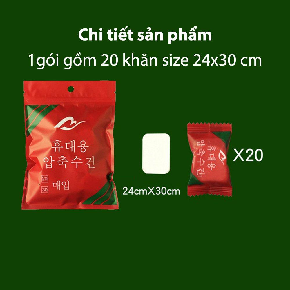Khăn giấy nén Hàn Quốc gói 20 viên khăn nén bỏ túi du lịch tiện lợi ,khăn ướt dạng viên nén