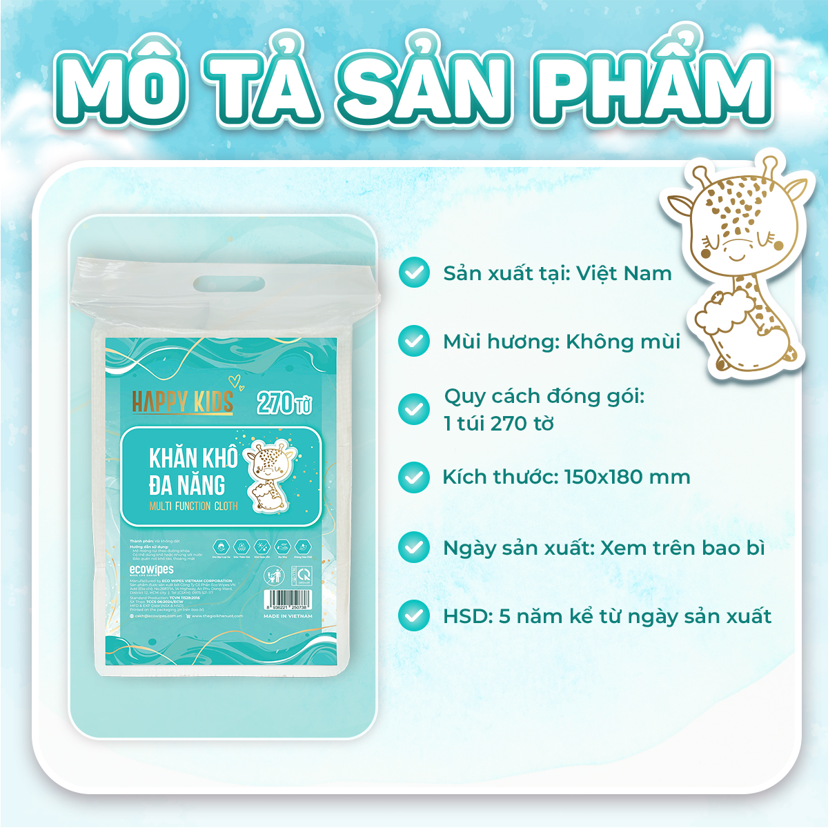 MÔ TẢ SẢN PHẨM: ️Sản xuất tại: Việt Nam. ️Mùi hương: không mùi ️Kích thước: 150 x 180 mm ️Quy cách đóng gói: 1 túi 270 tờ ️Ngày sản xuất: Xem trên bao bì ️Hạn