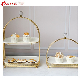 ✨Khay đựng bánh kẹo Tết 2 tầng, 3 tầng thiết kế mới khung thép mạ vàng đĩa sứ sang trọng Anzzar KB-23