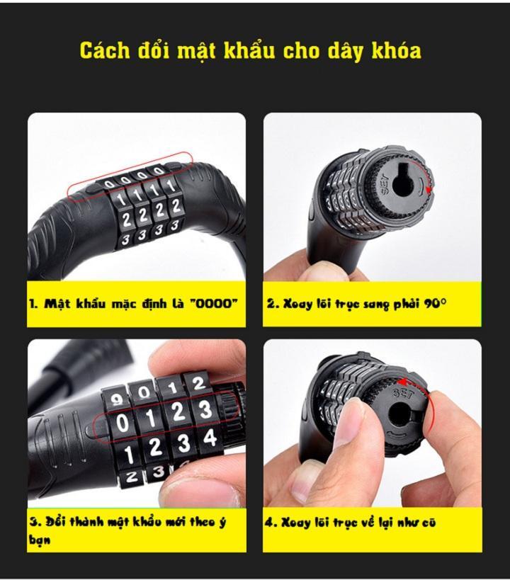 Hướng dẫn cách thay đổi mật khẩu khoa xe đạp 5 số chống trộm dài 120cm #khoaxedap #khoaxedap5so