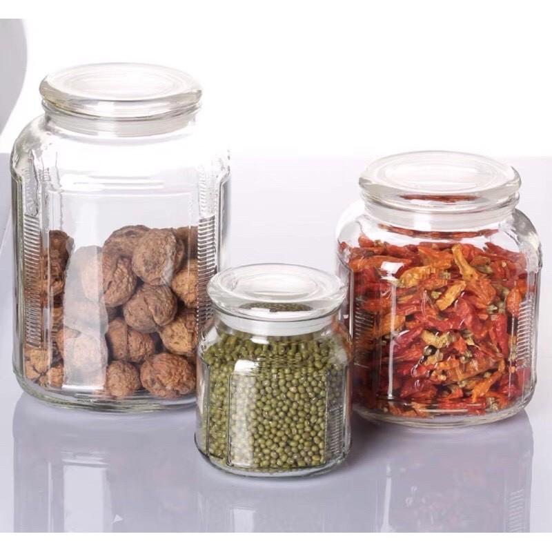 ✨lọ thủy tinh đựng gia vị, hạt, đồ khô hình vuông nắp gioăng cao su 3 cỡ