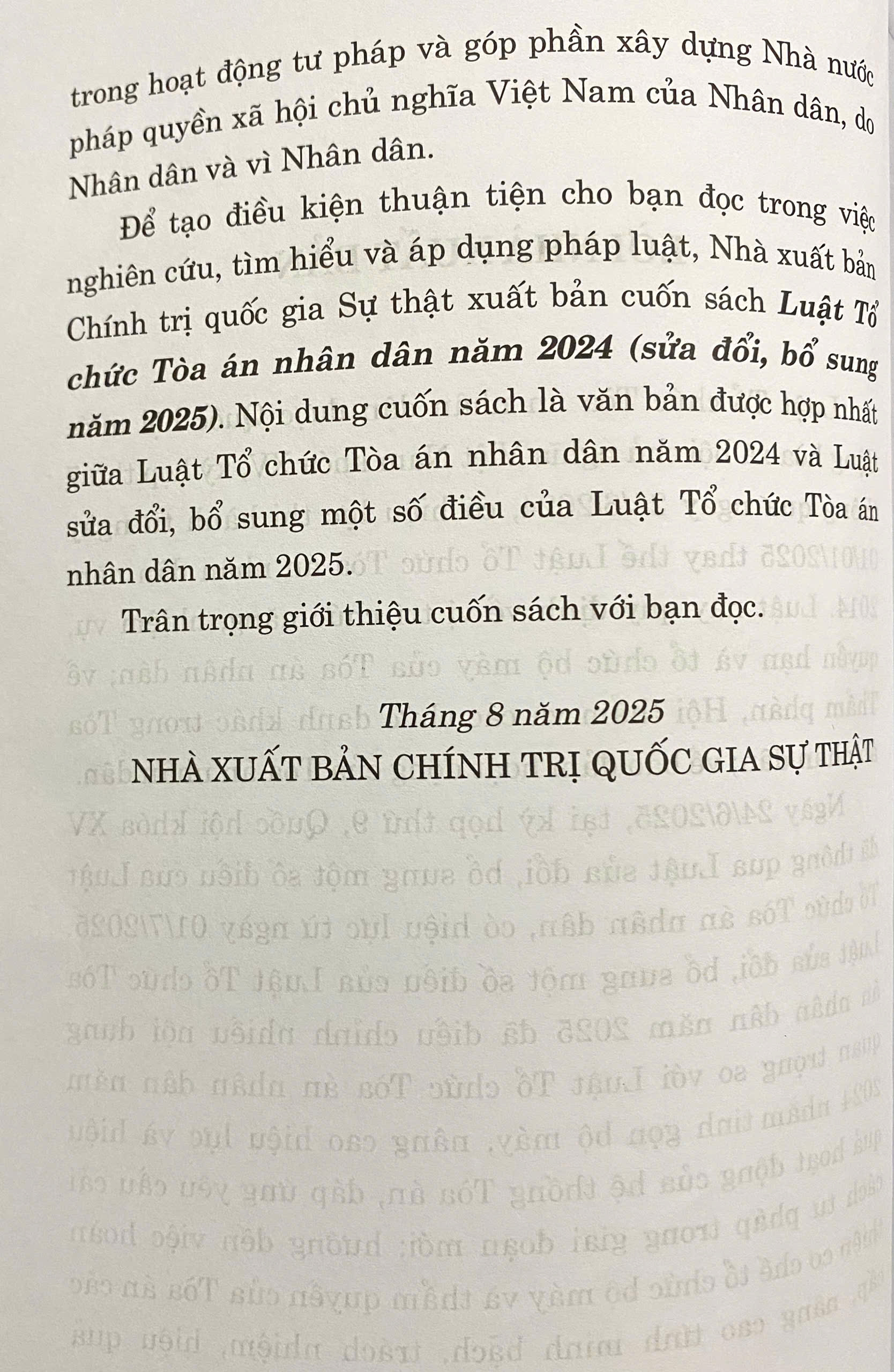 Luật Tổ chức Tòa án nhân dân năm 2024 (sửa đổi, bổ sung năm 2025) Khổ sách 13x19 Năm xuất bản 2025