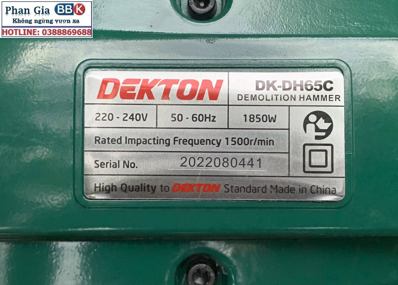 Máy đục bê tông Dekton 30ly Dk-65 1850w tặng 2 mũi đục