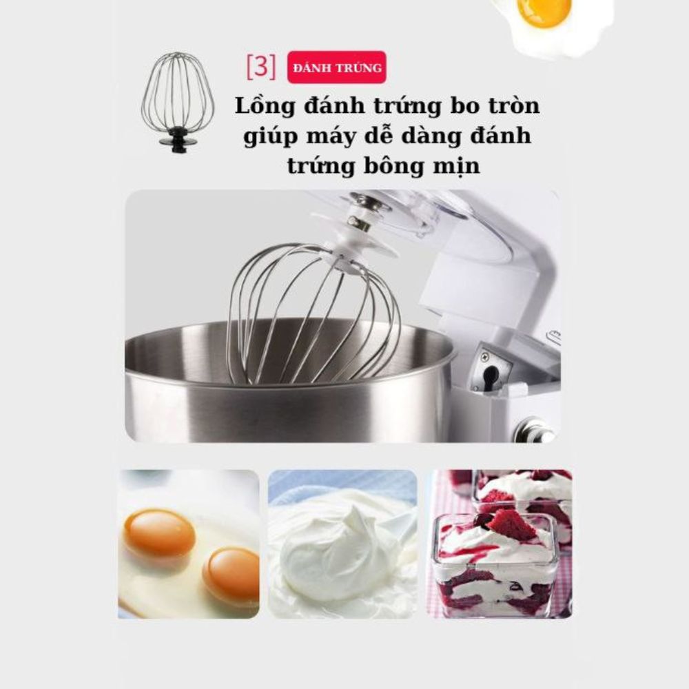Mô Tả Sản Phẩm Ứng dụng: - Đánh trứng, đánh kem tươi, làm đồ tráng miệng, nhào nước xốt, nhào bột bá Thiết kế: - Thiết kế nhẹ, màu đen phối màu xám ánh kim