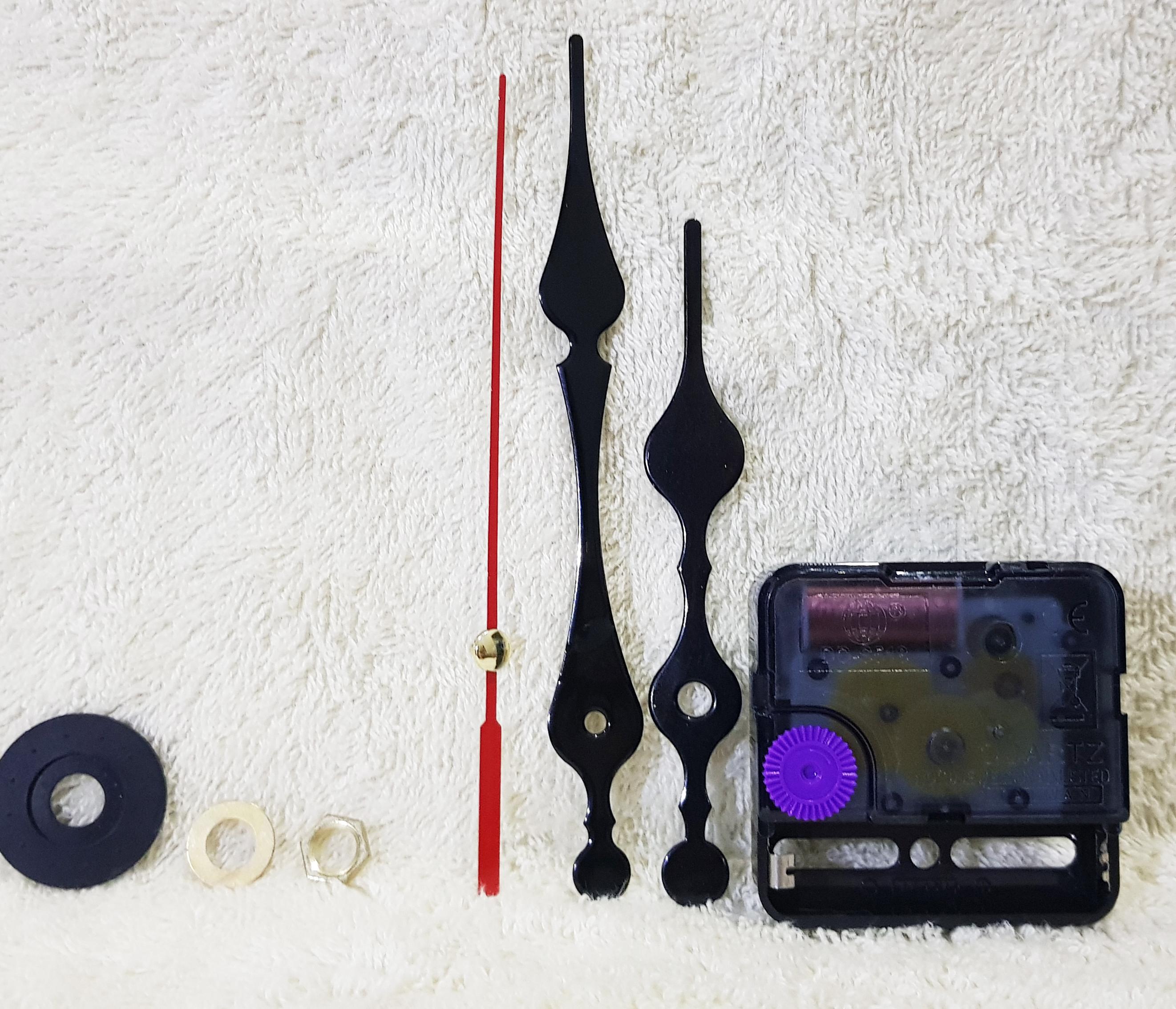 MÔ TẢ SẢN PHẨM Bộ linh kiện gắn đồng hồ treo tường, đồng hồ dán tường cỡ lớn bao gồm: 01 máy đồng hồ: Quartz (chạy 2 kim cỡ lớn) 01 bộ 2 kim (Kích