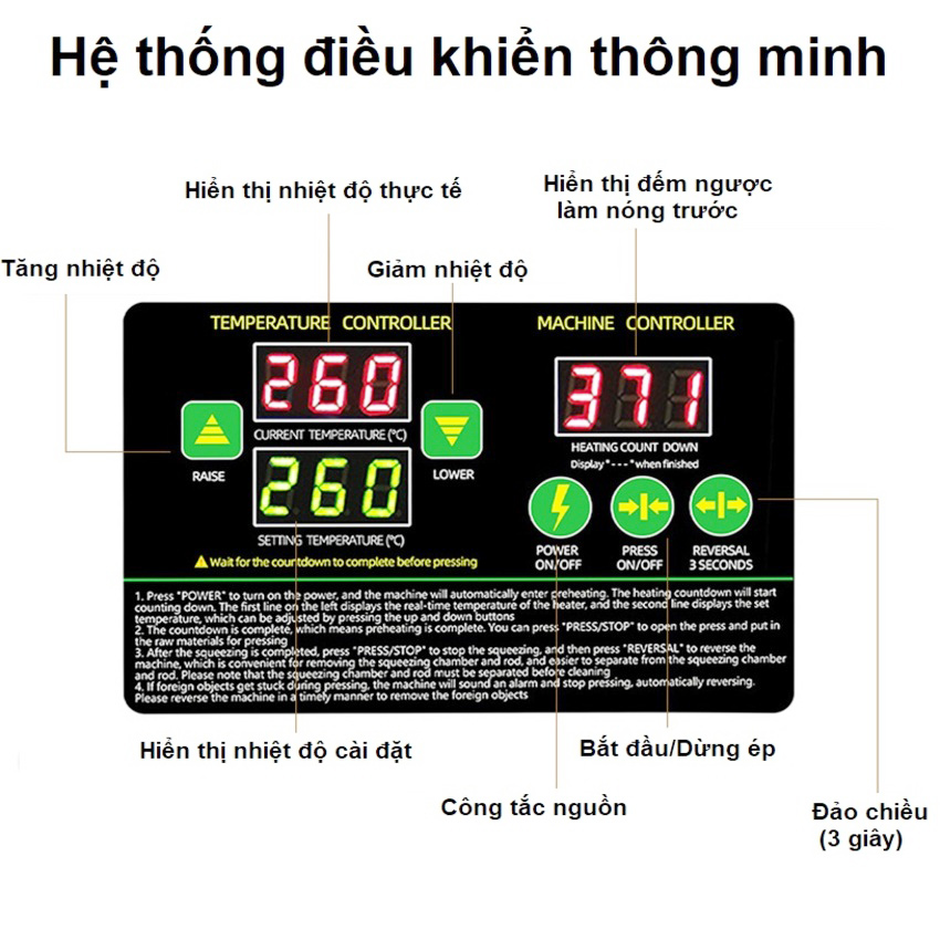 - Cách cài đặt nhiệt độ khi ép: