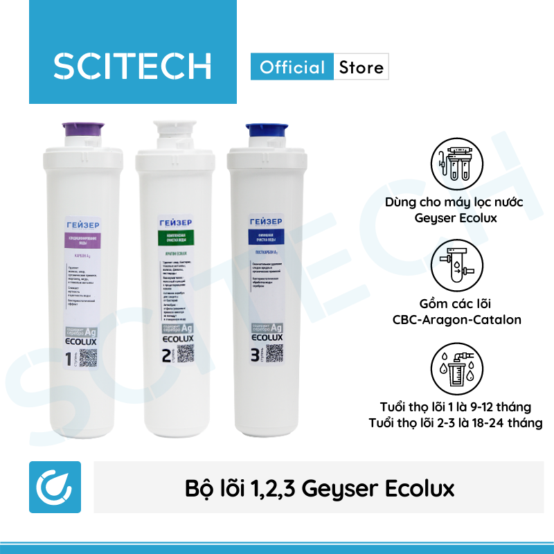 Lõi Nano Silver Geyser (lõi Nano Bạc Geyser) chứa than hoạt tính cao cấp được phủ nano bạc giúp loại bỏ virus, vi khuẩn, chống tái nhiễm khuẩn cho nước đầu ra, thanh lọc và