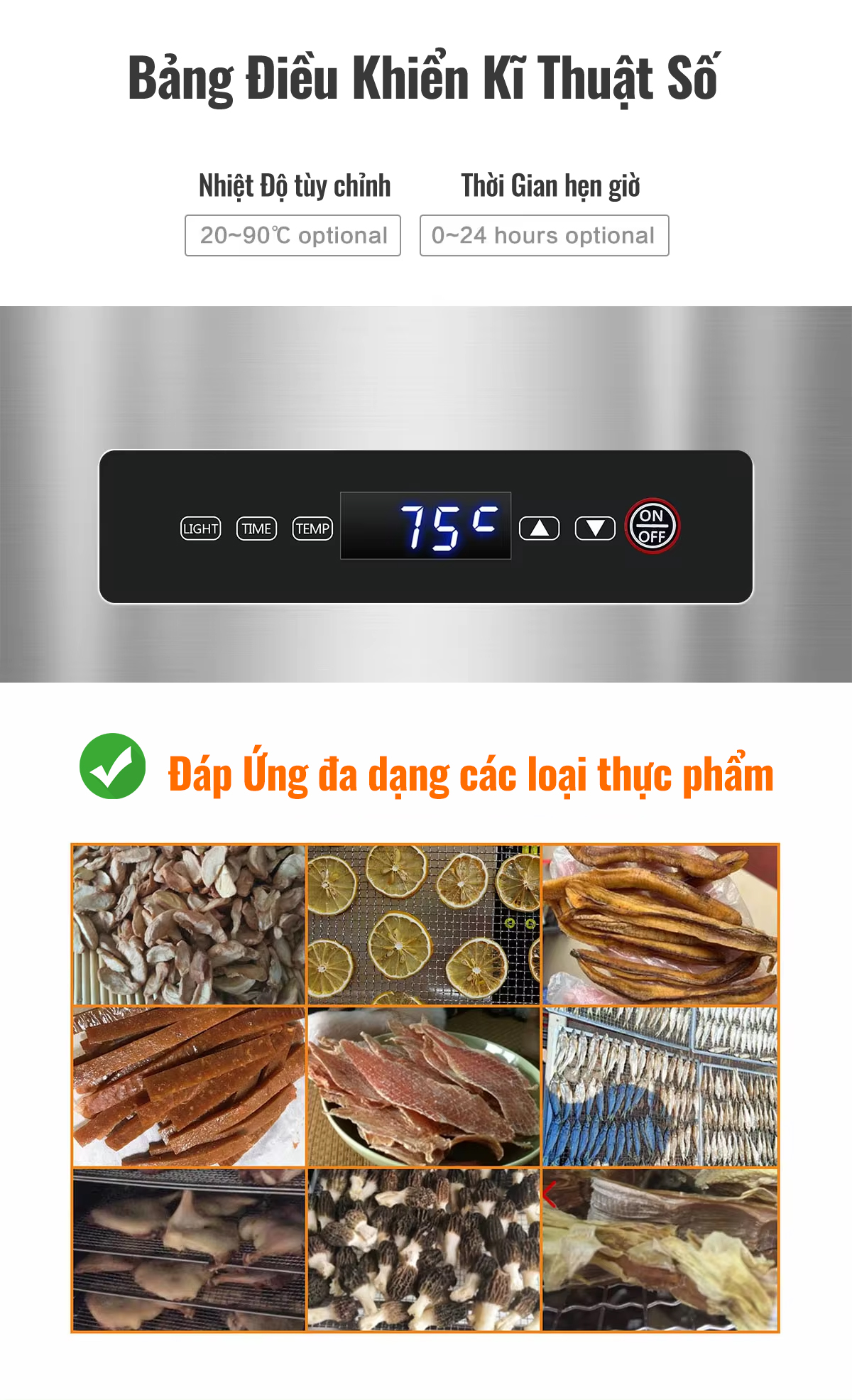 - Thời gian sấy : 0~24h.