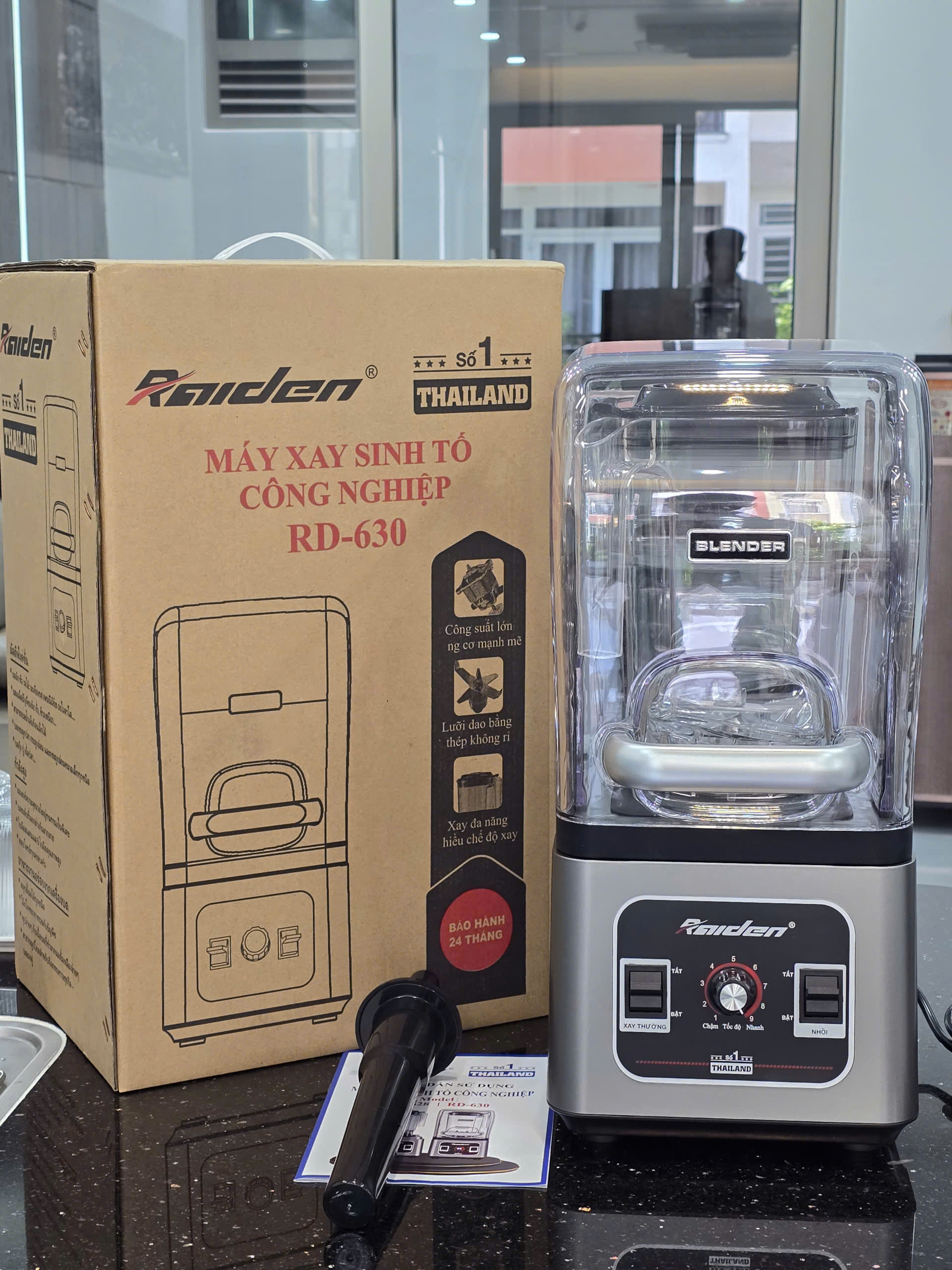 Máy xay sinh tố công nghiệp 2680W Raiden cối nhựa kháng vỡ 3L, chống ồn khi xay BH 24 Tháng -Đặc biệt có cối chống ồn bên ngoài. - Xay đá -