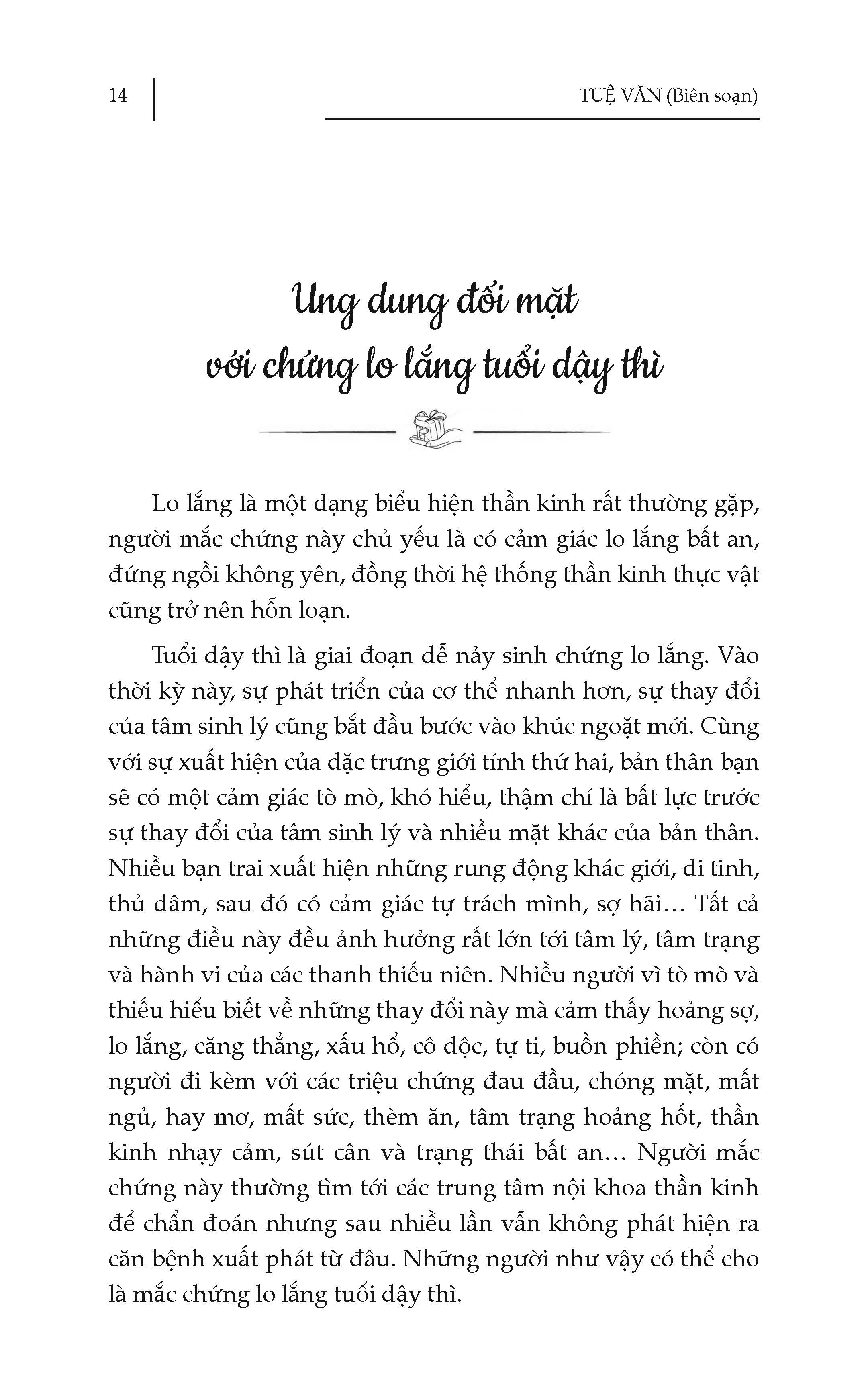 "Món quà cha mẹ dành cho con trai tuổi mới lớn" là cuốn sách không thể thiếu cho hành trình trưởng thành của các bạn trai. Cuốn sách cung cấp những kiến thức khoa học, dễ hiểu và thiết thực về các vấn đề mà các bạn trai thường gặp phải như: sức khỏe sinh lý, tâm lý, giới tính, kết bạn, giao tiếp… của các bạn trai tuổi dậy thì; giúp các cậu trai trẻ vượt qua những biến đổi tâm lý và sinh lí trong thời kỳ dậy thì.