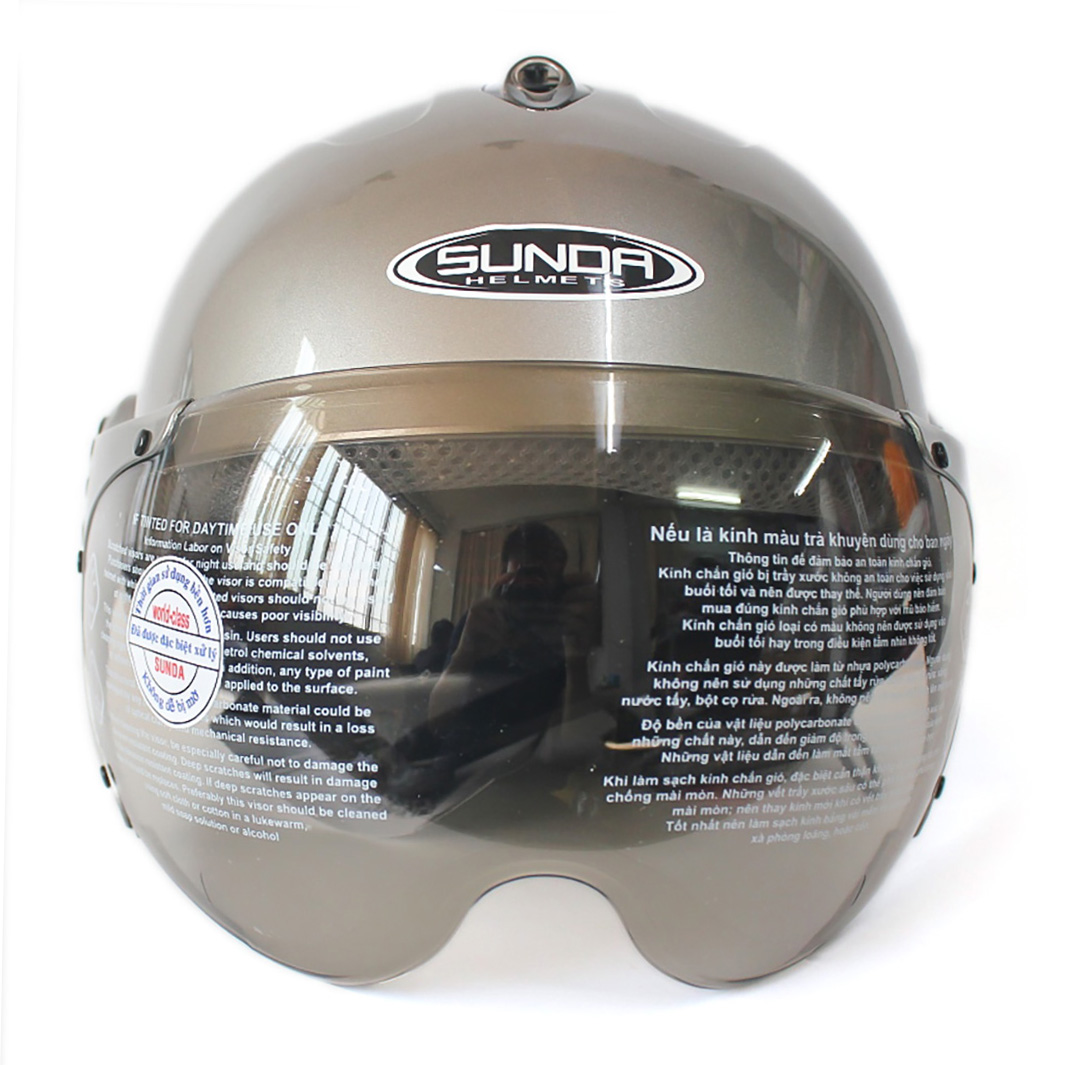 Mũ bảo hiểm nửa đầu có kính Sunda 180B trơn là phụ kiện không thể thiếu khi đi xe mô tô, xe máy, mang lại sự an toàn và phong cách thời trang cho người sử