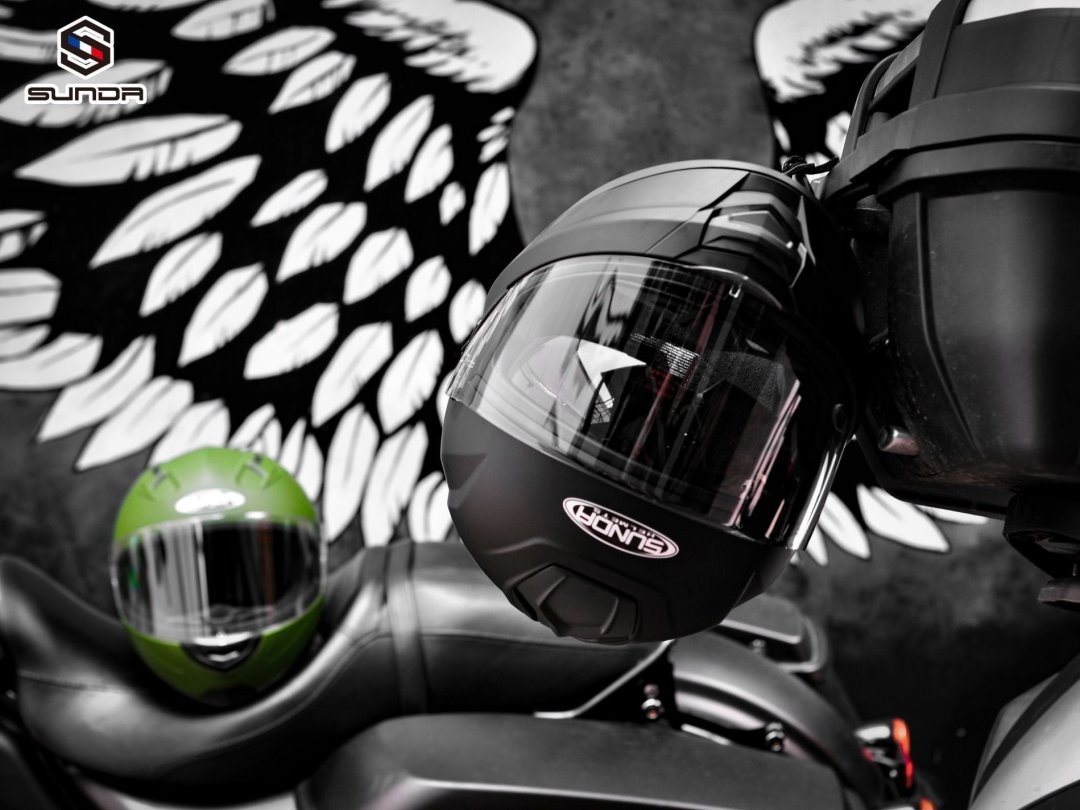 Mũ bảo hiểm fullface trùm đầu 2 kính SUNDA 823 – vệ sĩ chống tia cực tím *** THÔNG SỐ: Mã sản phẩm: Sunda 823 Kiểu mũ: Fullface (trùm đầu - 2 kính, kính ngoài