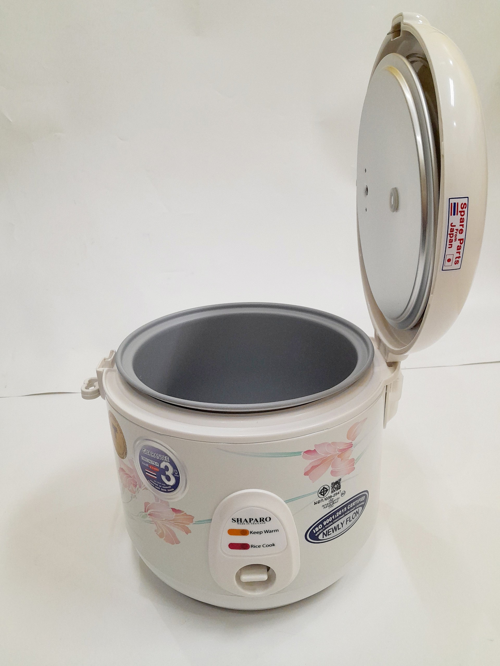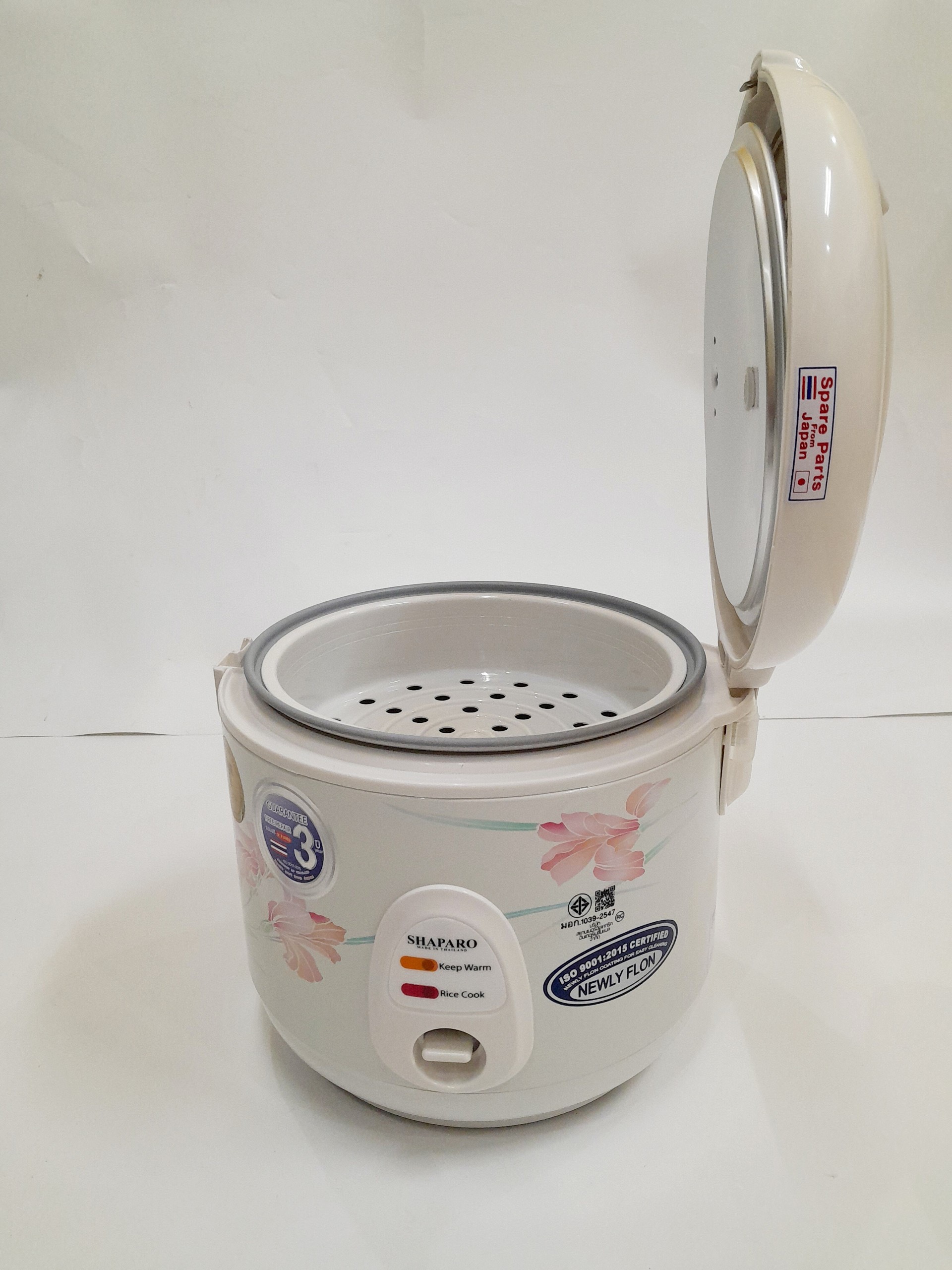 Mua tại Tiktok- Nồi cơm điện hiệu Shaparo Lồng nồi tráng men chống dính Vỏ nồi thiết kế hoa văn sang trọng Dung tích 1.8L Màu sắc: trắng Thùng 4 cái Linh kiện của Nhật Bản * Sản xuất tại Thái Lan