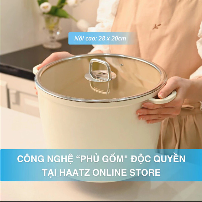 Nồi Phủ Gốm Thành Cao Đáy Từ Haatz - Made In Korea, Size 28cm Nồi Chống Dính Dùng Mọi Loại Bếp