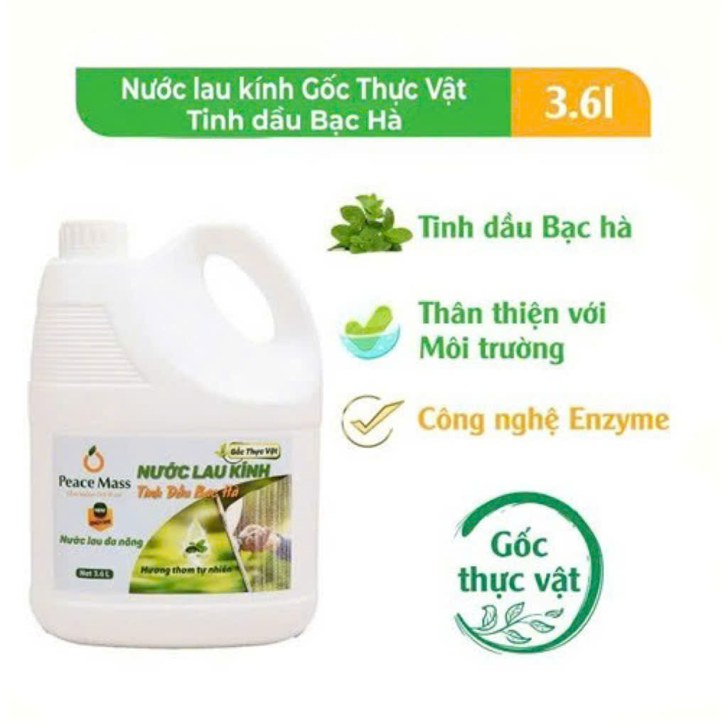 ✨Nước Lau Kính Gốc Thực Vật Tinh dầu Bạc hà Peace Mass (Thuộc nhóm Sản phẩm Lành tính / Sinh học) Can 3.6 Lít