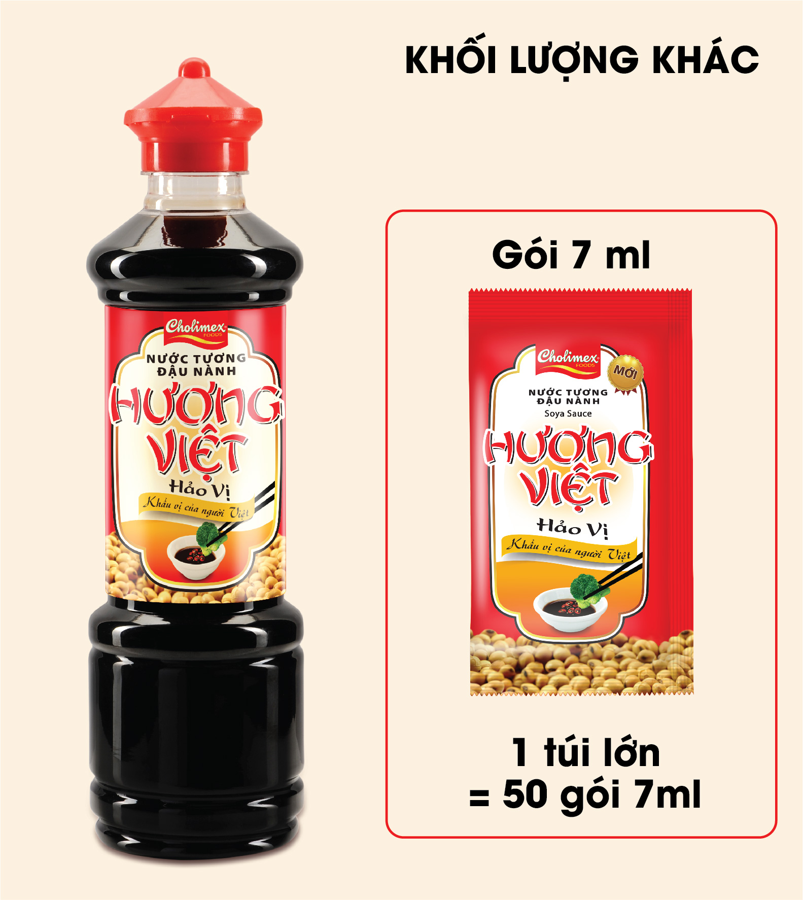 Nước tương Hương Việt Hảo Vị mới với công thức cải tiến, tăng cường độ đạm, cho hậu vị đậm đà hơn, kích thích vị giác, cho món ăn thêm thơm ngon hơn.