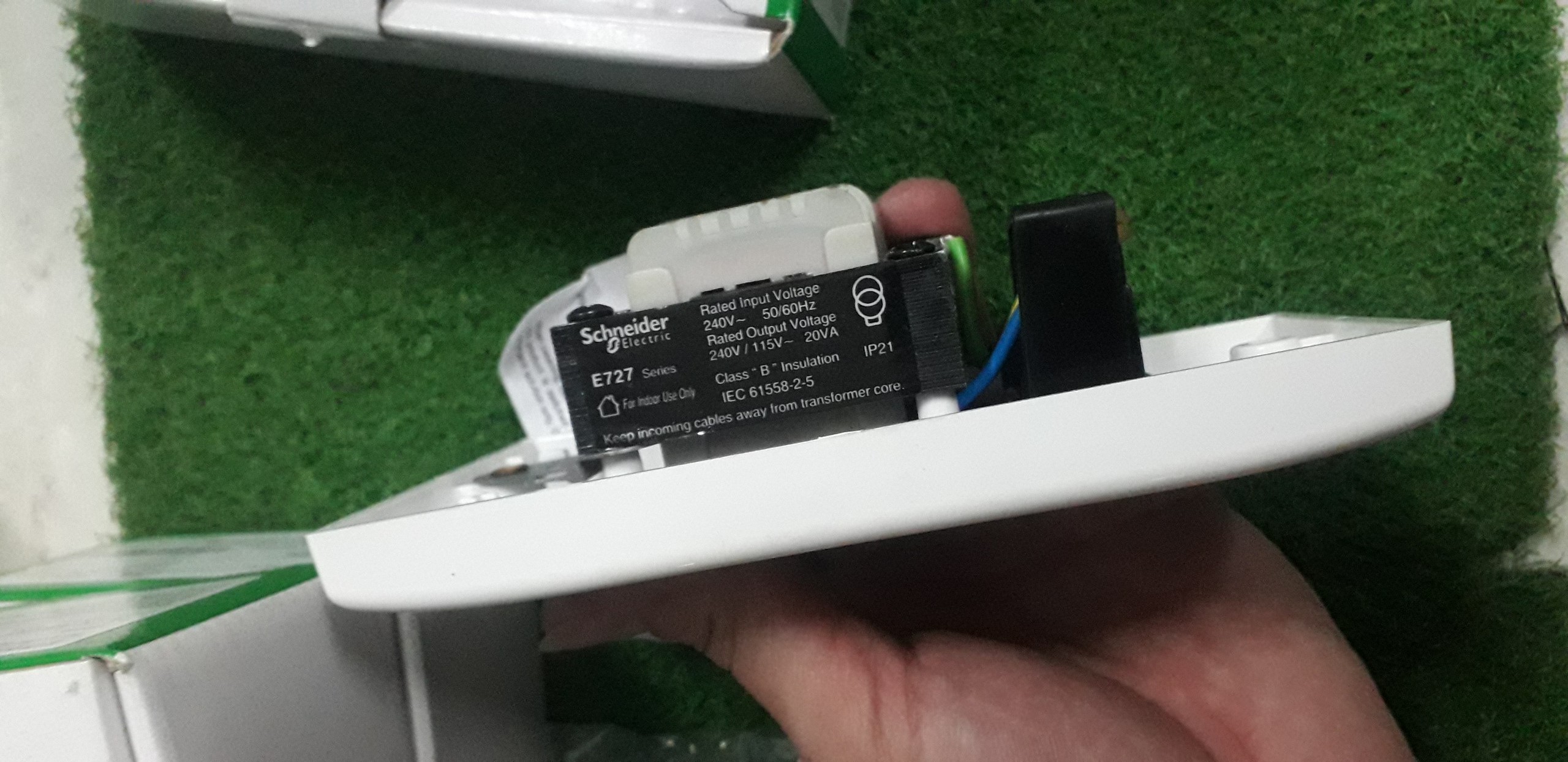 ✨Ổ cắm dao cạo râu E727 WE G19 Schneider - Màu trắng, điện áp 115/240 Vac