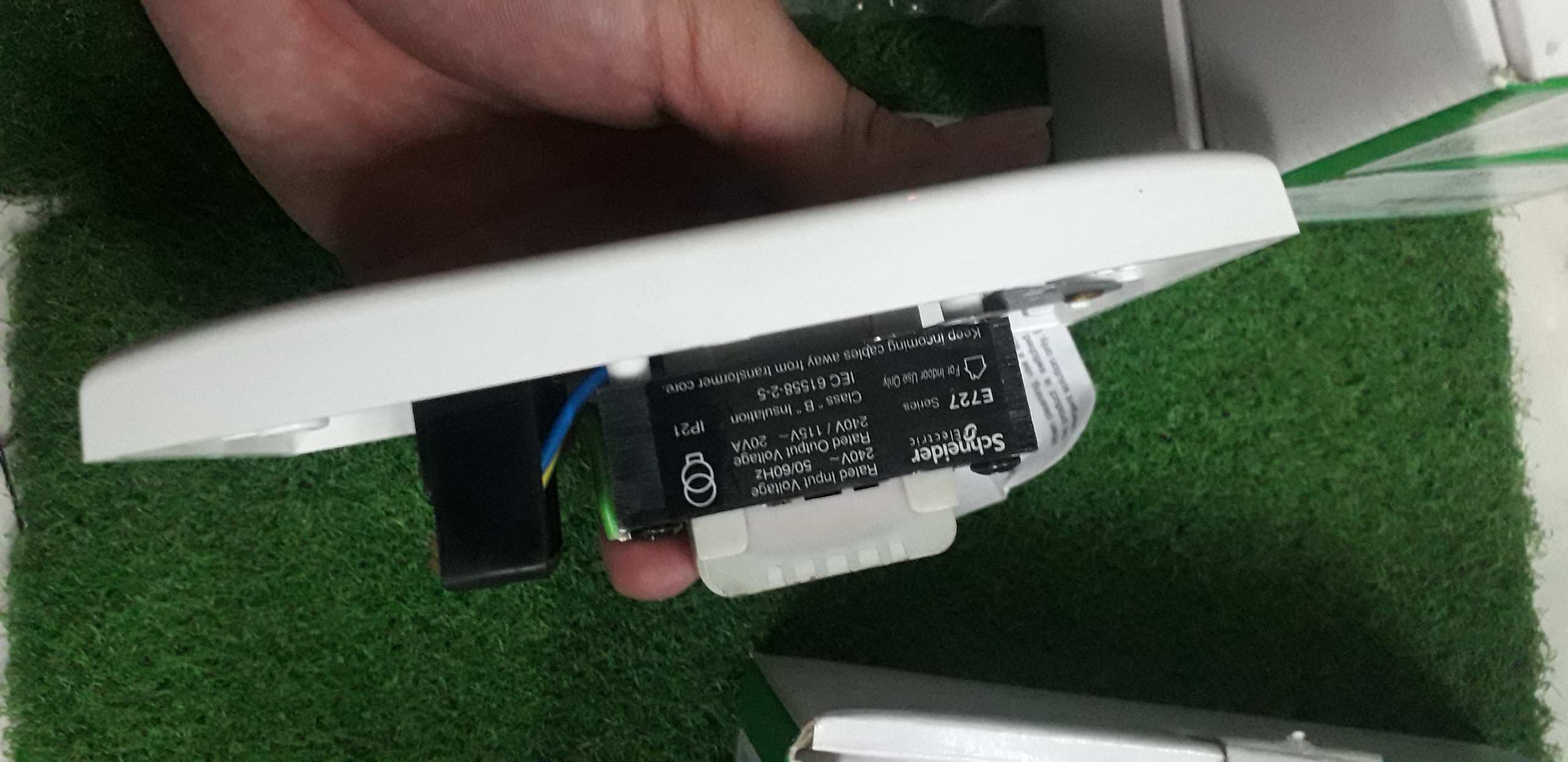 - Nhiệt độ bảo quản: °C Đặc điểm môi trường sử dụng : indoor; No UV resistant Tiêu chuẩn : IEC 61558-1 Kích thước Chiều rộng : 87mm; Chiều cao : 147 mm Sử dụng đế âm E257DBE_C5 hoặc A3B050_G19 (Kích thước (mm): 75x75x47)