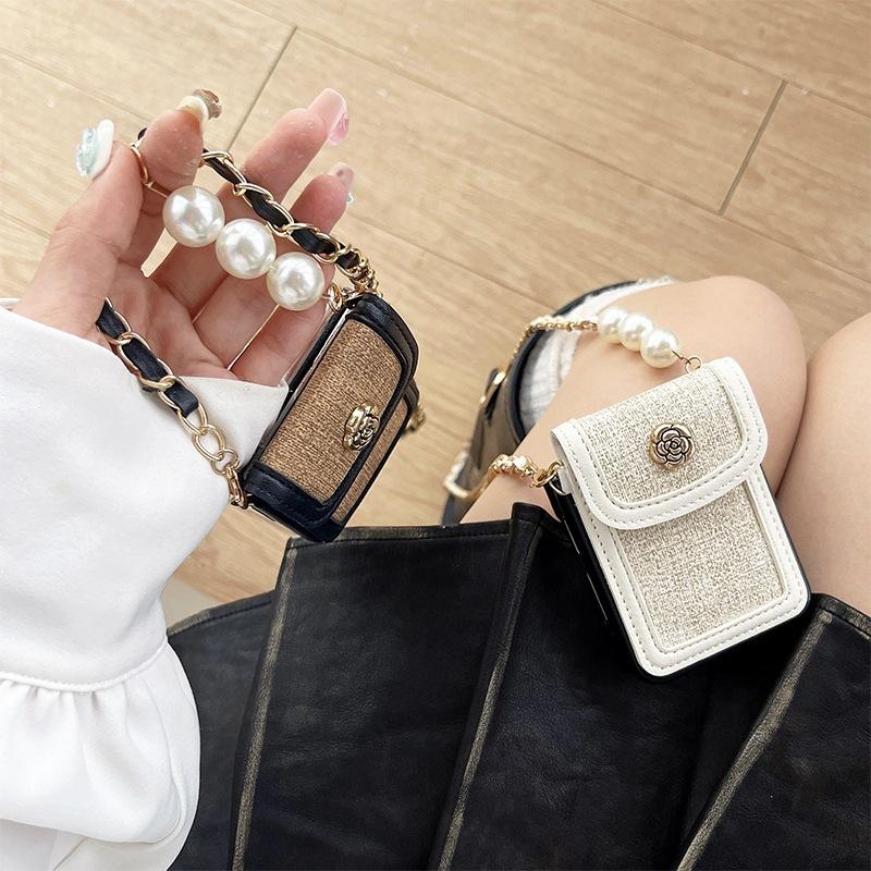Ốp Lưng dành cho Samsung Galaxy Z Flip 6 / Z Flip 5 dạng ví, kèm phụ kiện xinh xắn - chất liệu : vải bố , khung nhựa cứng - kèm dây đeo ngọc