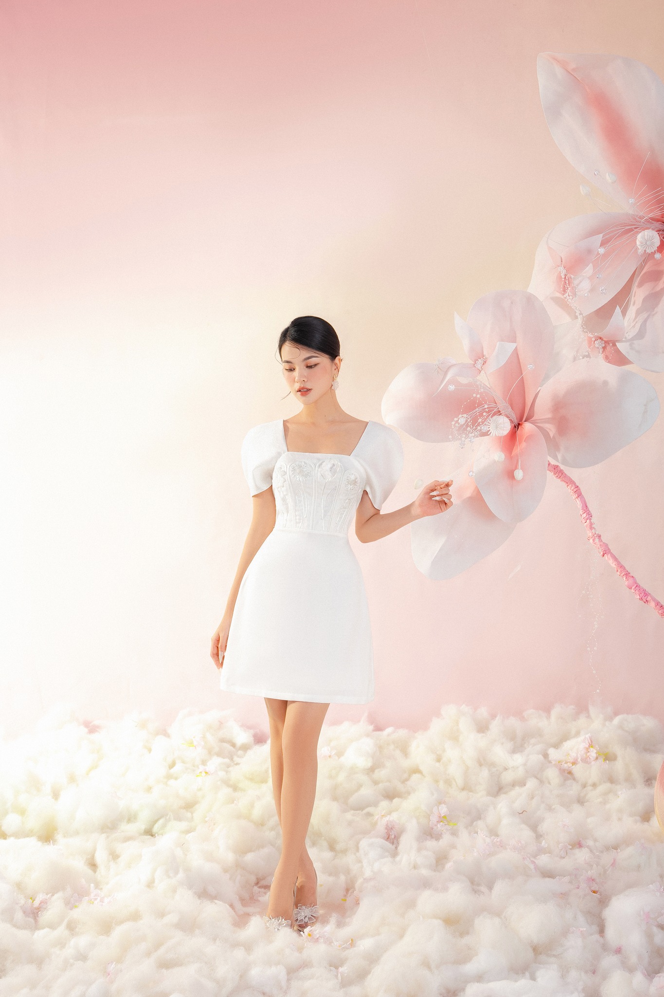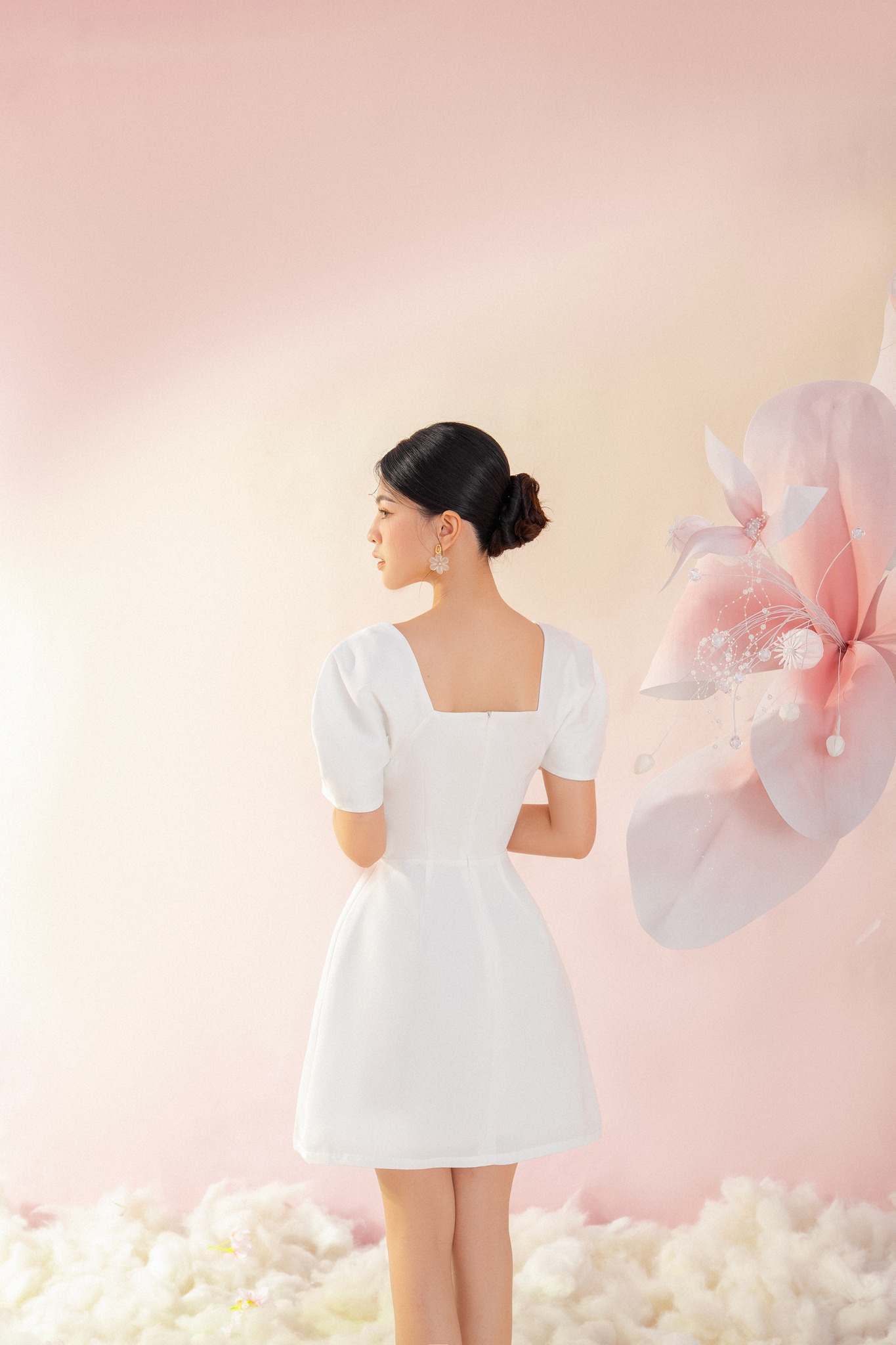 ღ THÔNG TIN SẢN PHẨM: Tên sản phẩm: Đầm trắng cột nơ Thông số size: S, M, L, XL Chất liệu: Chất xốp kim cương Chiều dài Đầm: Size S: 100