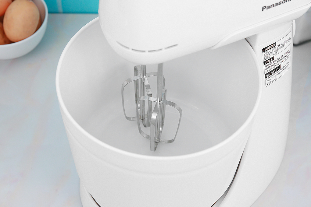 Máy đánh trứng Panasonic màu trắng tươi sáng, kết cấu chắc chắn, tinh xảo, tô điểm cho căn bếp gia đình thêm sang trọng Có thể sử dụng kiểu để bàn hoặc cầm tay linh hoạt, đáp ứng nhu cầu của mọi người dùng. Đặc biệt, được thiết kế cải tiến, chống mỏi tay khi dùng lâu (trong trường hợp bạn nhấc máy ra khỏi thân trụ để sử dụng đánh trộn nguyên liệu). Đánh trứng, đánh bột, đánh kem, nhào trộn nhanh chóng, tiết kiệm thời gian với công suất mạnh mẽ 175W  Máy đánh trứng có 5 tốc độ dễ dàng tùy chỉnh với cần gạt Tùy chỉnh tốc độ phù hợp với từng công thức nấu, nguyên liệu đảm bảo thực phẩm được chế biến thơm ngon, bổ dưỡng, đạt tỉ lệ chế biến thành công cao hơn. Đi kèm 2 que đánh trứng, 2 que đánh bột bằng thép bền chắc, chống rỉ sét, an toàn cho sức khỏe Tô đánh trứng lớn, đựng được nhiều nguyên liệu cùng lúc, đánh trộn thực phẩm tiết kiệm thời gian Các bộ phận tháo rời dễ dàng, vệ sinh và bảo quản thuận tiện Sau khi vệ sinh, bạn muốn sử dụng thì cần lắp các bộ phận đúng khớp, vì máy chỉ hoạt động khi được lắp đặt đúng. Ngoài ra, máy còn tự ngắt khi chạy quá tải, bạn cần lưu ý để sử dụng máy an toàn, hiệu quả hơn. Sử dụng máy đánh trứng bền tốt