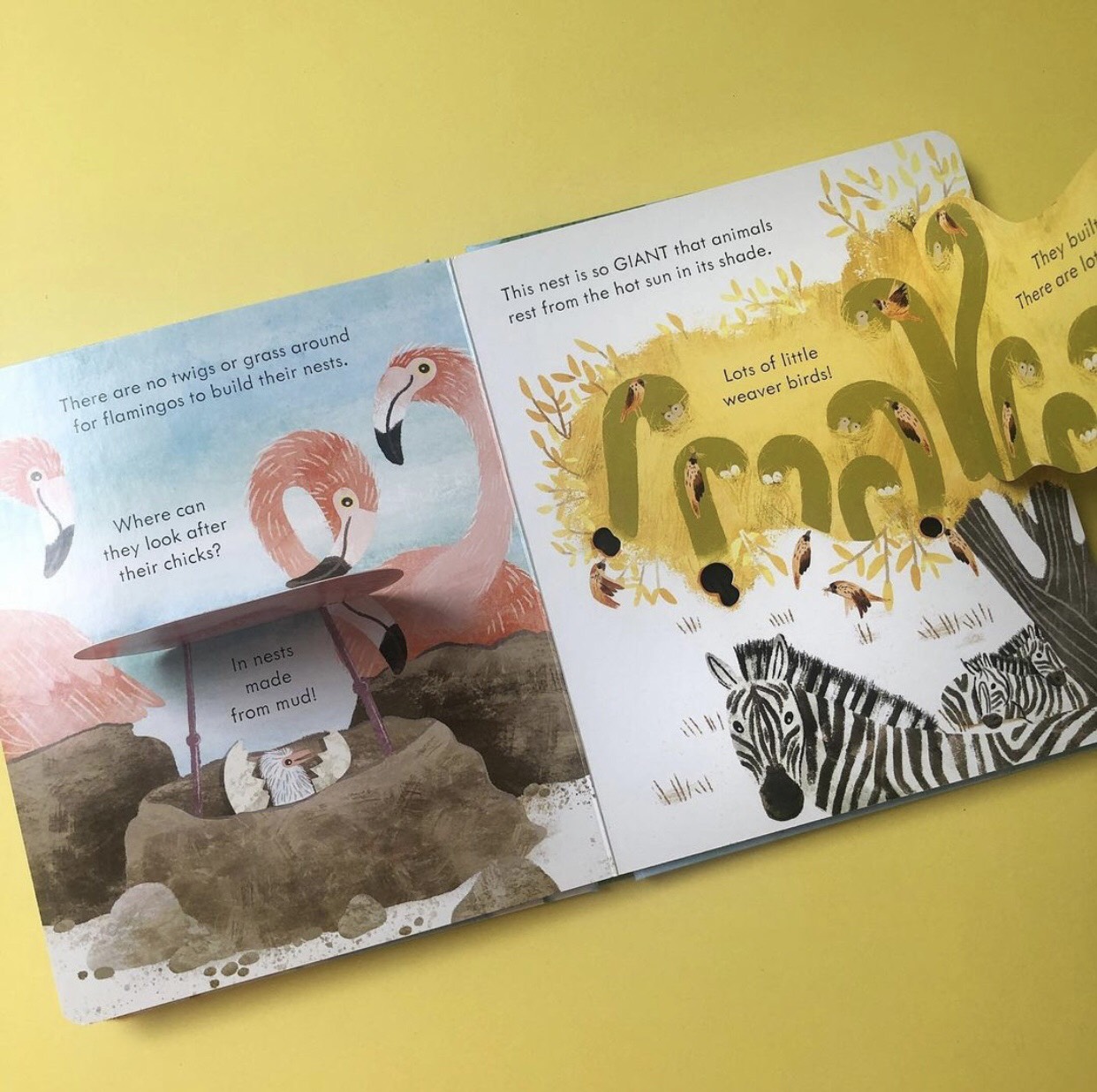 Peep inside a bird's nest to see her precious eggs nestled there. Lift a flap to see them hatch, and find out how a bird takes care of its young. Discover all kinds of different