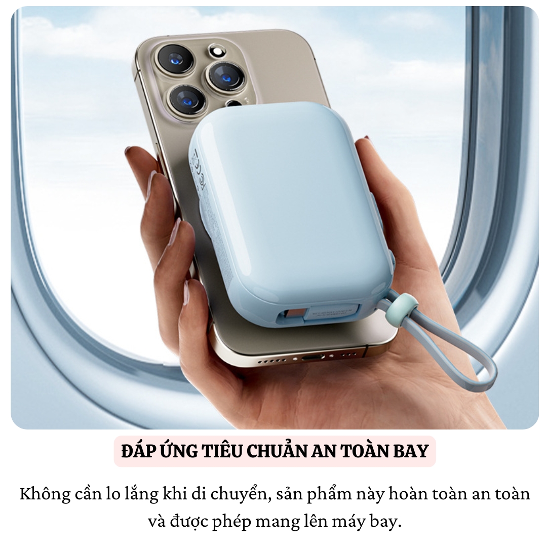 Thiết Kế Tinh Tế và An Toàn Cho Du Lịch: Với thiết kế nhỏ gọn và phong cách Morandi cổ điển, WIWU W-P049 không chỉ đẹp mắt mà còn an toàn để mang lên máy bay, đảm bảo bạn luôn có nguồn năng lượng dự phòng bất cứ khi nào cần.