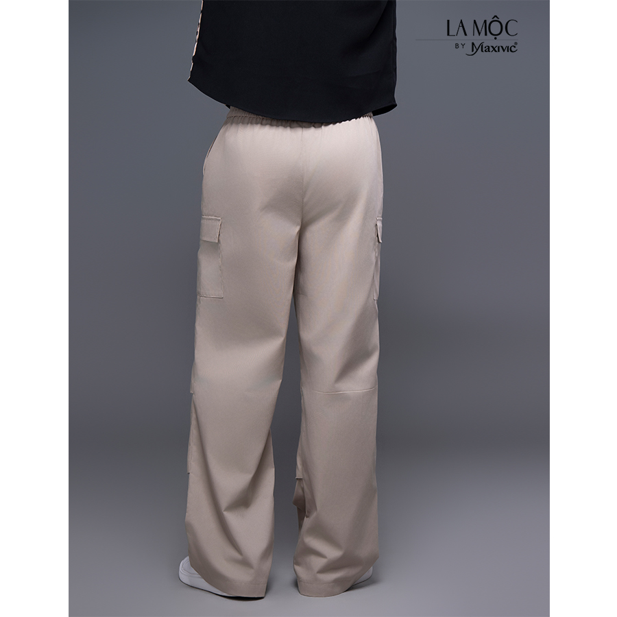 - Chất liệu: Vải polyester lụa - Quần túi hộp màu kem, cạp chun co giãn, form dáng rộng rãi che khuyết điểm tốt, mang lại sự năng động và thoải mái cho người mặc.