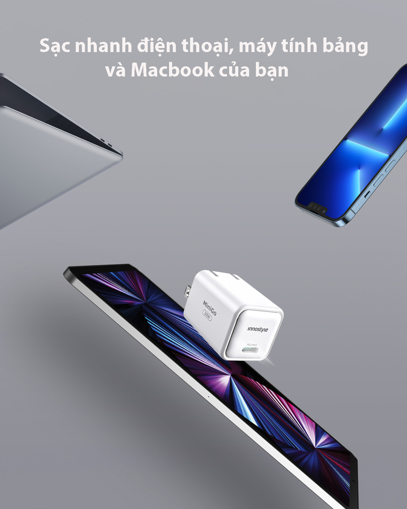Sạc nhanh siêu nhỏ INNOSTYLE Minigo GAN II có khả năng tương thích USB phổ quát, với công nghệ Power Delivery và PPS, loại bỏ nhu cầu sử dụng nhiều bộ sạc – đơn giản hóa cuộc sống hàng ngày với chỉ một bộ sạc Minigo Gan II 30W để cung cấp năng lượng cho tất cả các thiết bị lớn và nhỏ của bạn.