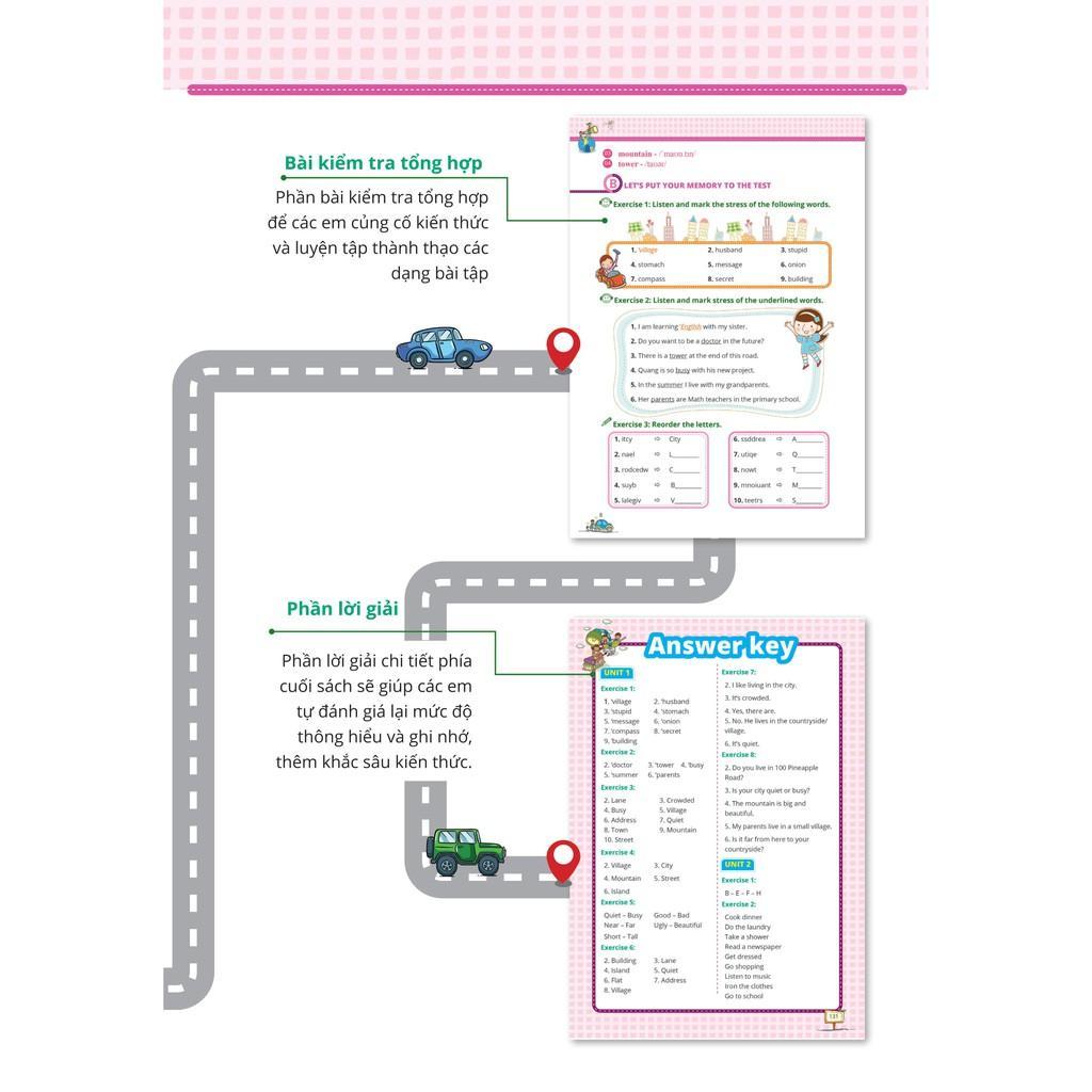 - Cấu trúc bài học chặt chẽ – Ôn tập toàn diện, ghi nhớ nhanh A. Kiến thức cần nhớ – What you need to remember Phần lý thuyết ngắn gọn, giúp các em ôn tập toàn bộ kiến thức từ vựng, cấu trúc và ngữ âm theo mỗi unit trên lớp B. Bài kiểm tra tổng hợp – Let’s put your memory to the test Bài kiểm tra tổng hợp các dạng bài tập thực hành: Trắc nghiệm chọn câu đúng, nghe và điền từ, tìm lỗi sai, nối, hoàn thành câu… C. Đáp án – Answer key Đáp án và lời giải chi tiết cuối sách giúp các em tự đánh giá lại mức độ thông hiểu và ghi nhớ, khắc sâu thêm kiến thức