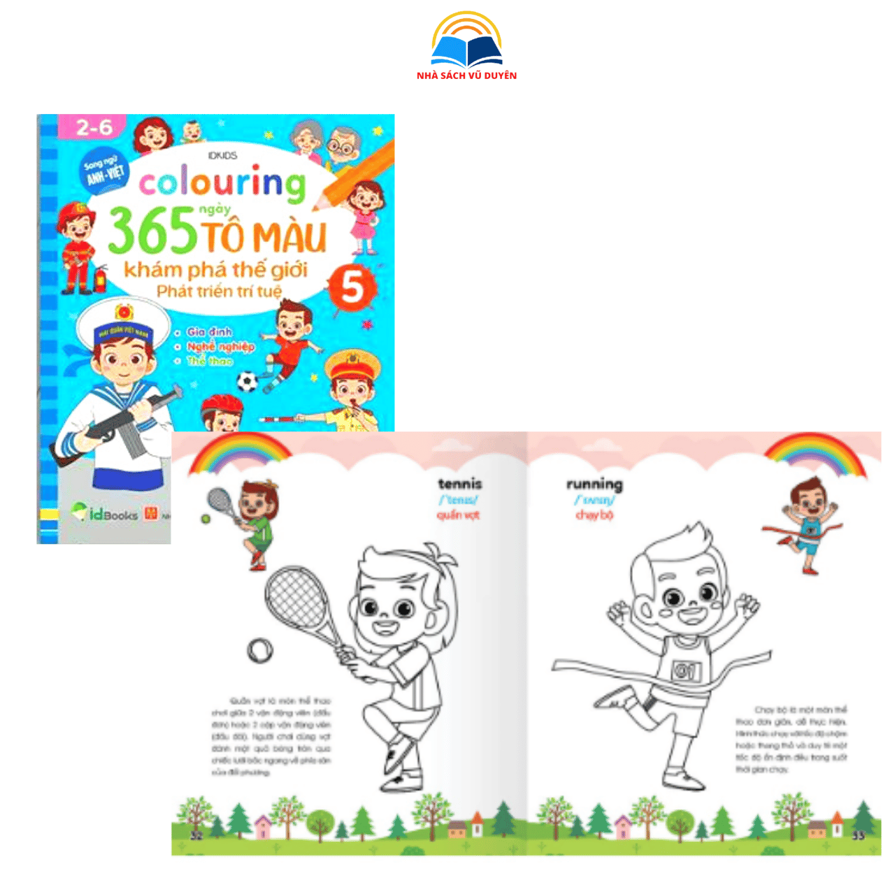 - Cải thiện tính kiên nhẫn cho trẻ... Colouring 365 ngày Tô màu - KHÁM PHÁ THẾ GIỚI PHÁT TRIỂN TRÍ TUỆ - Bộ 6 cuốn ️️ Cuốn 1: Động vật nuôi, Chim, Cá ️️ Cuốn 2: Động vật hoang dã, Khủng long, bò sát, Côn trùng ️️ Cuốn 3: Hoa, Quả, Rau củ ️️ Cuốn 4: Giao thông, Đồ dùng gia đình, Đồ dùng học sinh ️️ Cuốn 5: Gia đình, Nghề nghiệp; Thể thao ️️ Cuốn 6: Công chúa, Hoàng tử, Các nhân vật cổ Truyện cổ tích Việt Nam và Thế giới