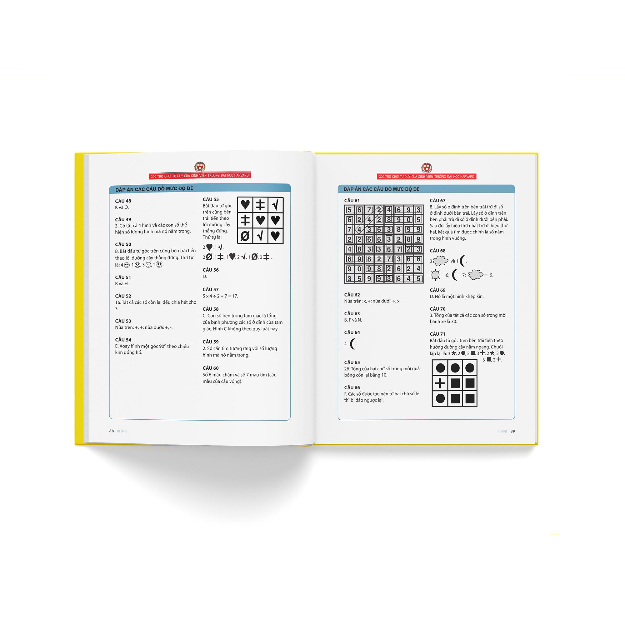 300 trò chơi tư duy của sinh viên trường đại học Harvard là cuốn sách trò chơi bán chạy với số lượng 10 triệu bản trên thế giới, gồm các trò chơi tư duy kinh điển của thế giới, khơi dậy và phát triển toàn diện tiềm năng trí tuệ, dẫn tới thành công.