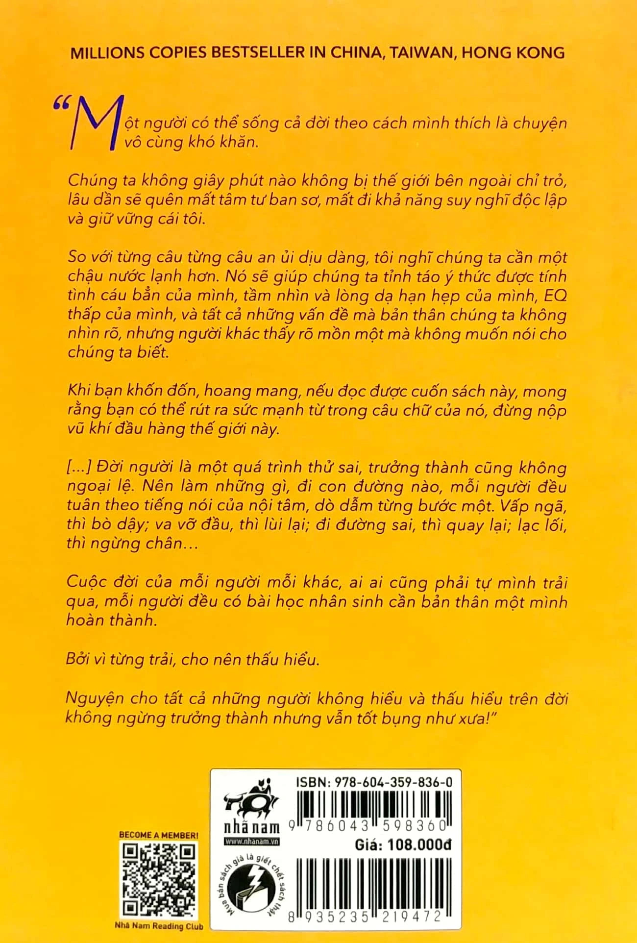 Khi bạn khốn đốn, hoang mang, nếu đọc được cuốn sách này, mong rằng bạn có thể rút ra sức mạnh từ trong câu chữ của nó, đừng nộp vũ khí đầu hàng thế giới này.