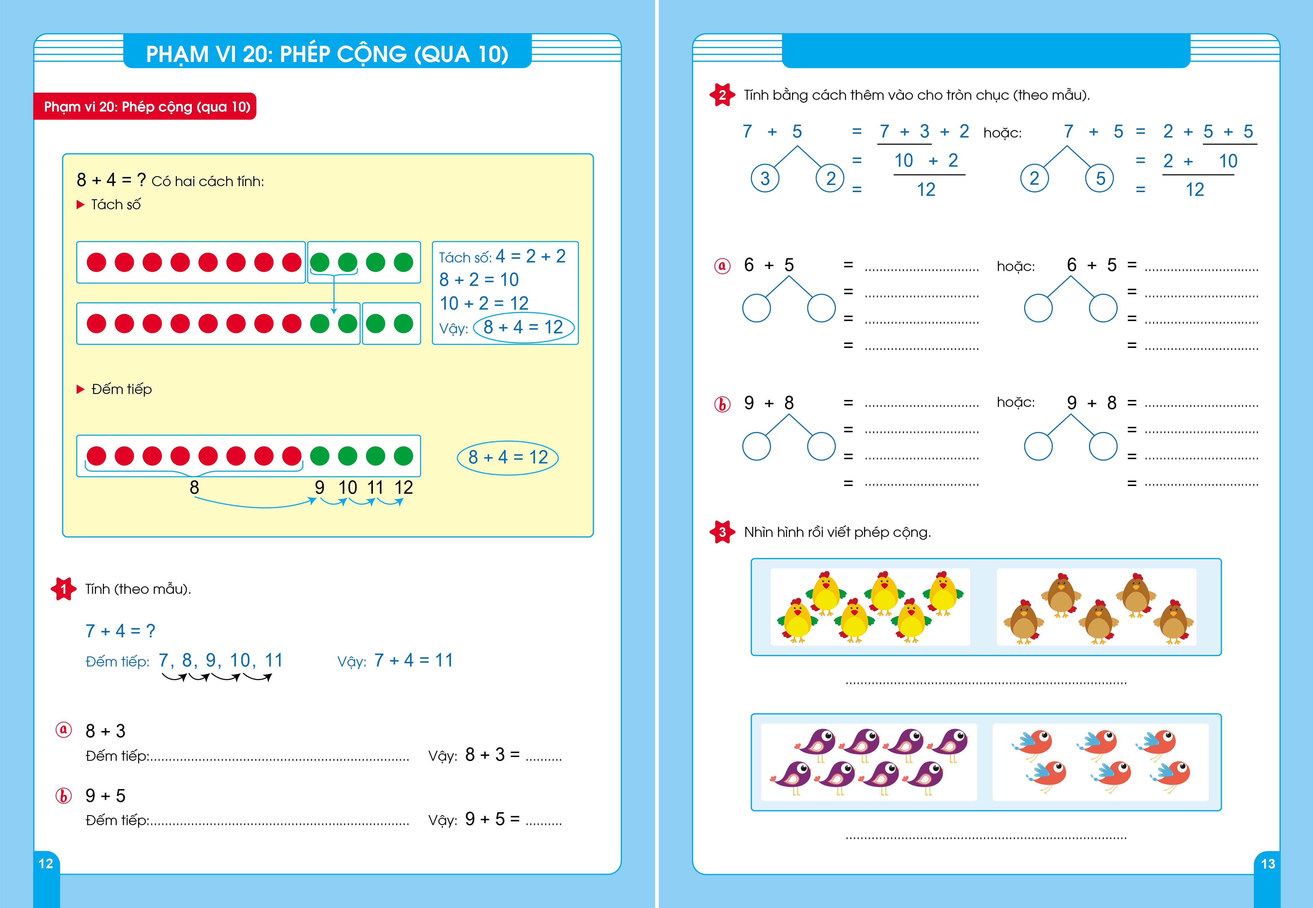 Sách được in khổ to và biên soạn theo sách giáo khoa chương trình mới, nội dung được minh họa nhiều hình ảnh ngộ nghĩnh nhằm thu hút các bé tập trung học và nhìn hình để tư duy nắm bắt kiến thức toán học dễ hiểu hơn, nhớ lâu hơn và hiệu quả tốt hơn.