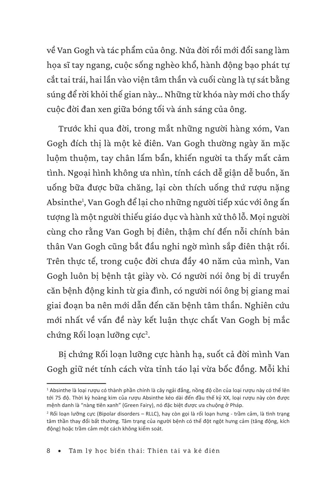 Cuốn sách này sẽ đưa bạn vào thế giới của những con người phi thường, những thiên tài từng bị xem là kẻ điên, những cá nhân mang tâm hồn vỡ vụn nhưng để lại dấu ấn sâu đậm trong lịch sử nhân loại. Từ Vincent van Gogh, người họa sĩ thiên tài sống trong nghèo đói và đau đớn tinh thần, đến Oscar Wilde, bậc thầy văn chương bị xã hội ruồng bỏ; từ những bộ óc siêu việt đến những cá nhân dám phá vỡ mọi khuôn khổ - họ đều là những nhân vật mà xã hội không thể lý giải.