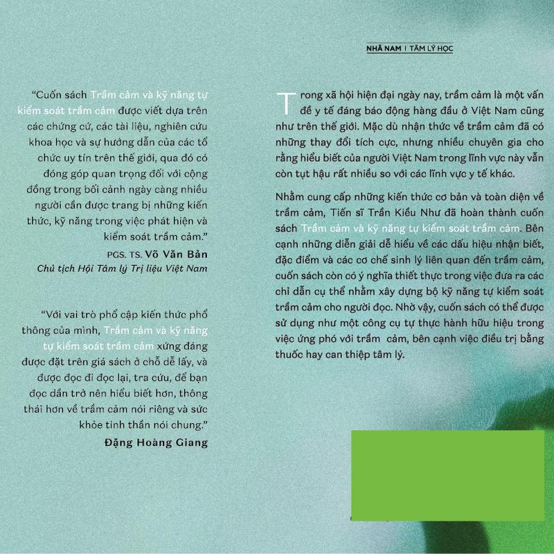 Nhằm cung cấp những kiến thức cơ bản và toàn diện về trầm cảm, Tiến sĩ Trần Kiều Như đã hoàn thành cuốn sách Trầm cảm và kỹ năng tự kiểm soát trầm cảm. Bên cạnh những diễn giải dễ hiểu về các dấu hiệu nhận biết, đặc điểm và các cơ chế sinh lý liên quan đến trầm cảm, cuốn sách còn có ý nghĩa thiết thực trong việc đưa ra các chỉ dẫn cụ thể nhằm xây dựng bộ kỹ năng tự kiểm soát trầm cảm cho người đọc. Nhờ vậy, cuốn sách có thể được sử dụng như một công cụ tự thực hành hữu hiệu trong việc ứng phó với trầm cảm bằng thuốc hay can thiệp tâm lý.