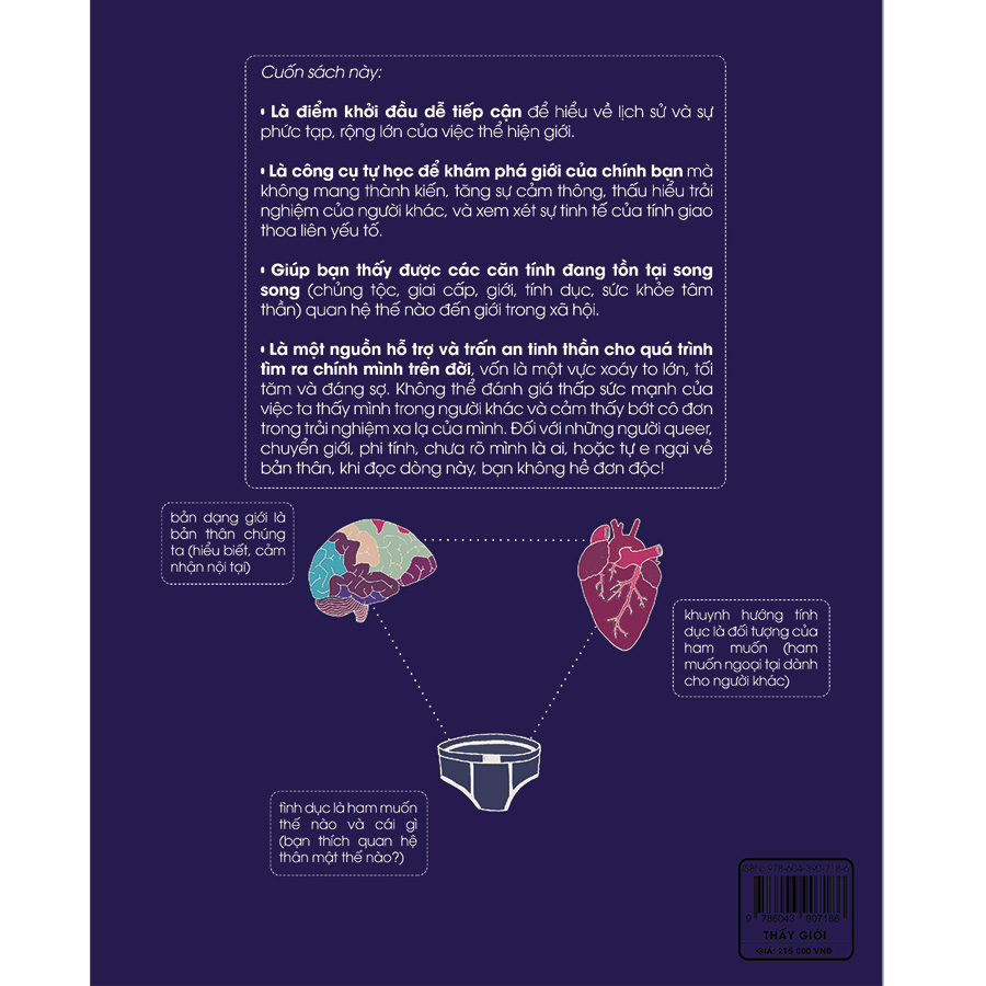 “Seeing Gender - Thấy giới” (Thục My dịch, Nhà xuất bản Phụ nữ Việt Nam phát hành) do tác giả queer Iris Gottlieb viết và vẽ minh họa. Cuốn sách cho thấy cách chúng ta hiểu và thể hiện sự phức tạp, đa chiều, đa góc cạnh của giới như thế nào. Nội dung được chia làm 3 phần: