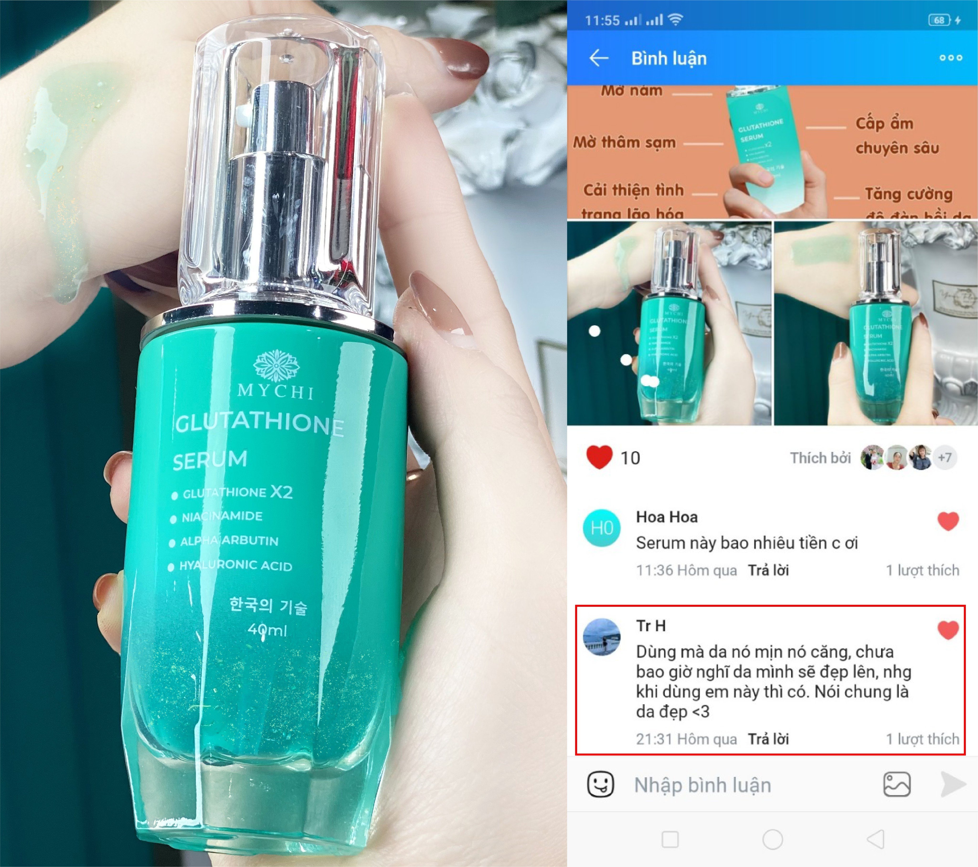 Serum cấy trắng Glutathione Mychi có tốt không/📞Zalo: 0912.847.939