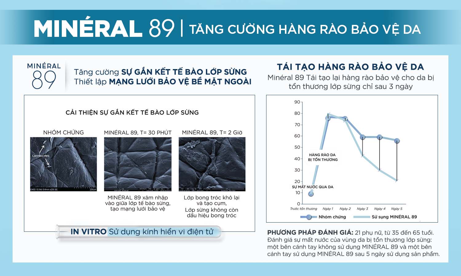 Cung cấp độ ẩm dài lâu vào sâu trong tế bào da, chứ không phải chỉ tức thời như xịt khoáng. Dưỡng chất khoáng cô đặc Vichy Mineral 89 làm dịu da, giúp da tươi trẻ mịn màng.