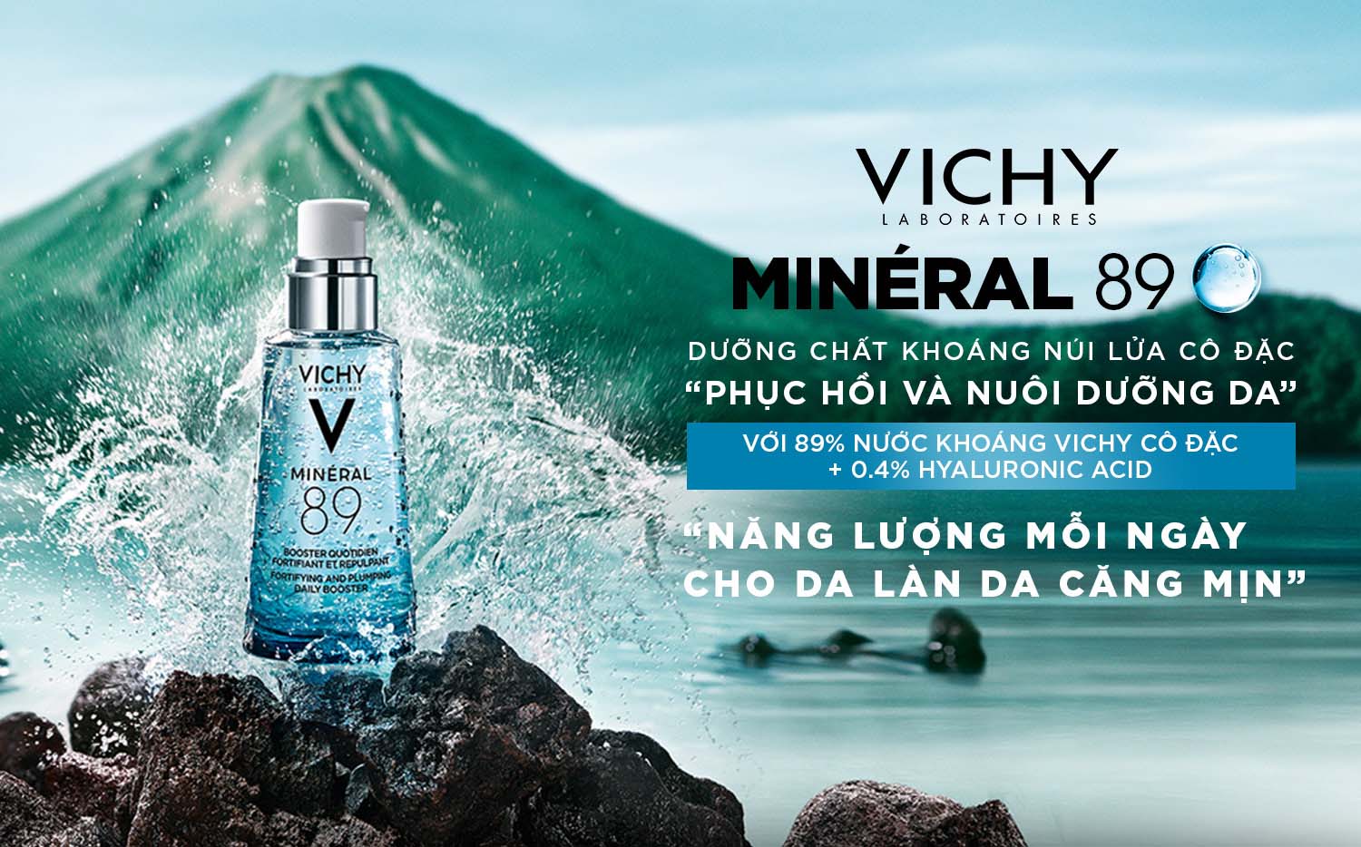 Dưỡng chất khoáng cô đặc Vichy Mineral 89 với thành phần 89% là nước khoáng cô đặc chứa 15 loại khoáng chất quý hiếm cực kỳ tốt cho da, cùng với Hyaluronic Acid tạo nên một lớp hàng rào bảo vệ da đồng thời phục hồi da căng mịn khỏe khoắn.